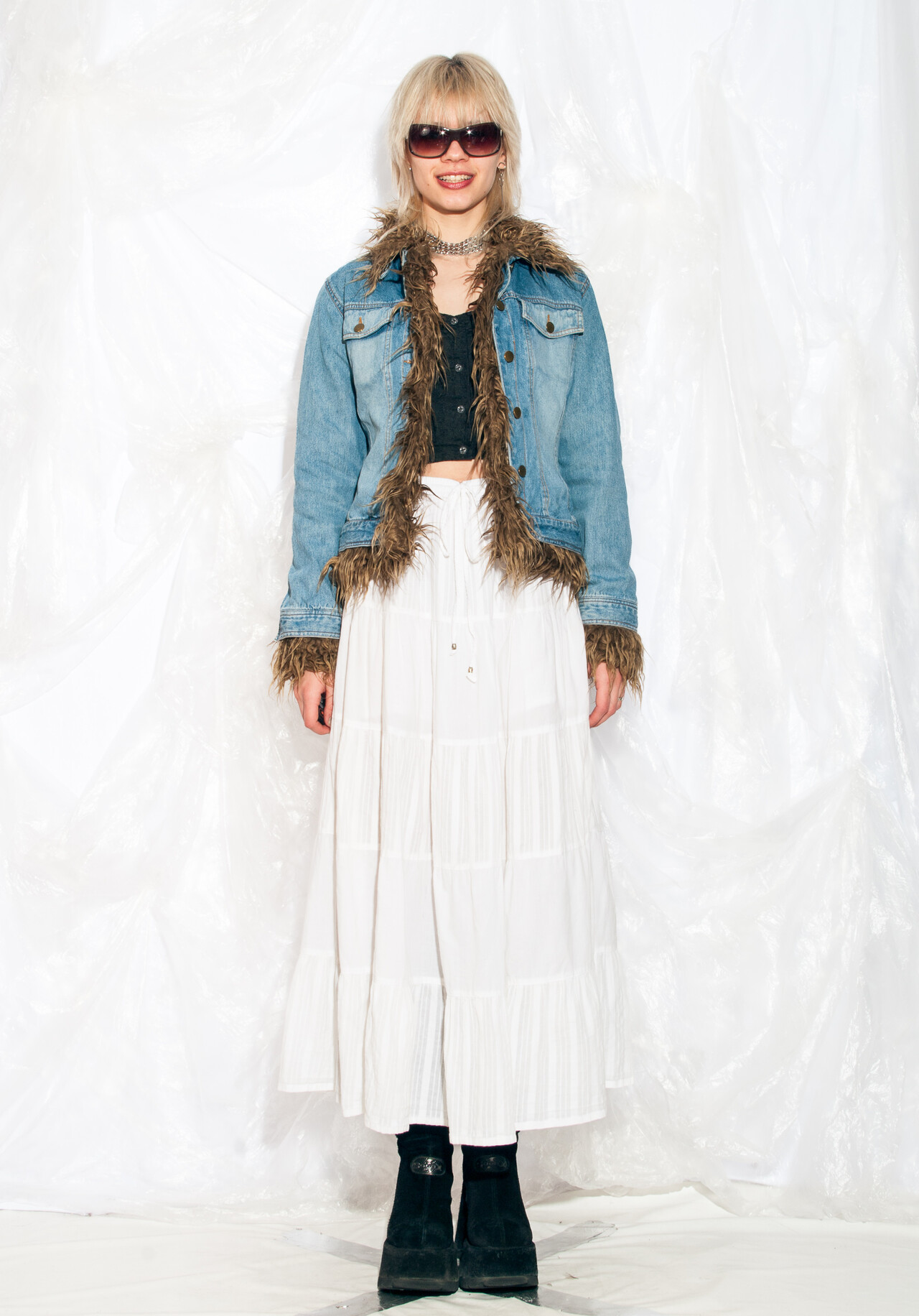 This Y2K vintage jacket with its faux fur lining is a flashback to the early 2000s. Slip into this denim piece and feel like a fashion-forward time traveller without the drama of Y2K computer glitches.
