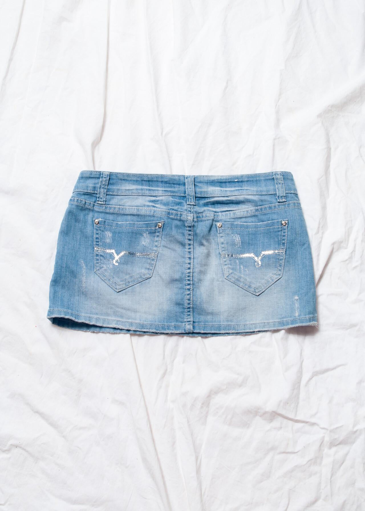 This Y2K vintage denim micro skirt is your ticket to channeling your inner Paris Hilton while navigating the 2000s fashion scene like a pro.