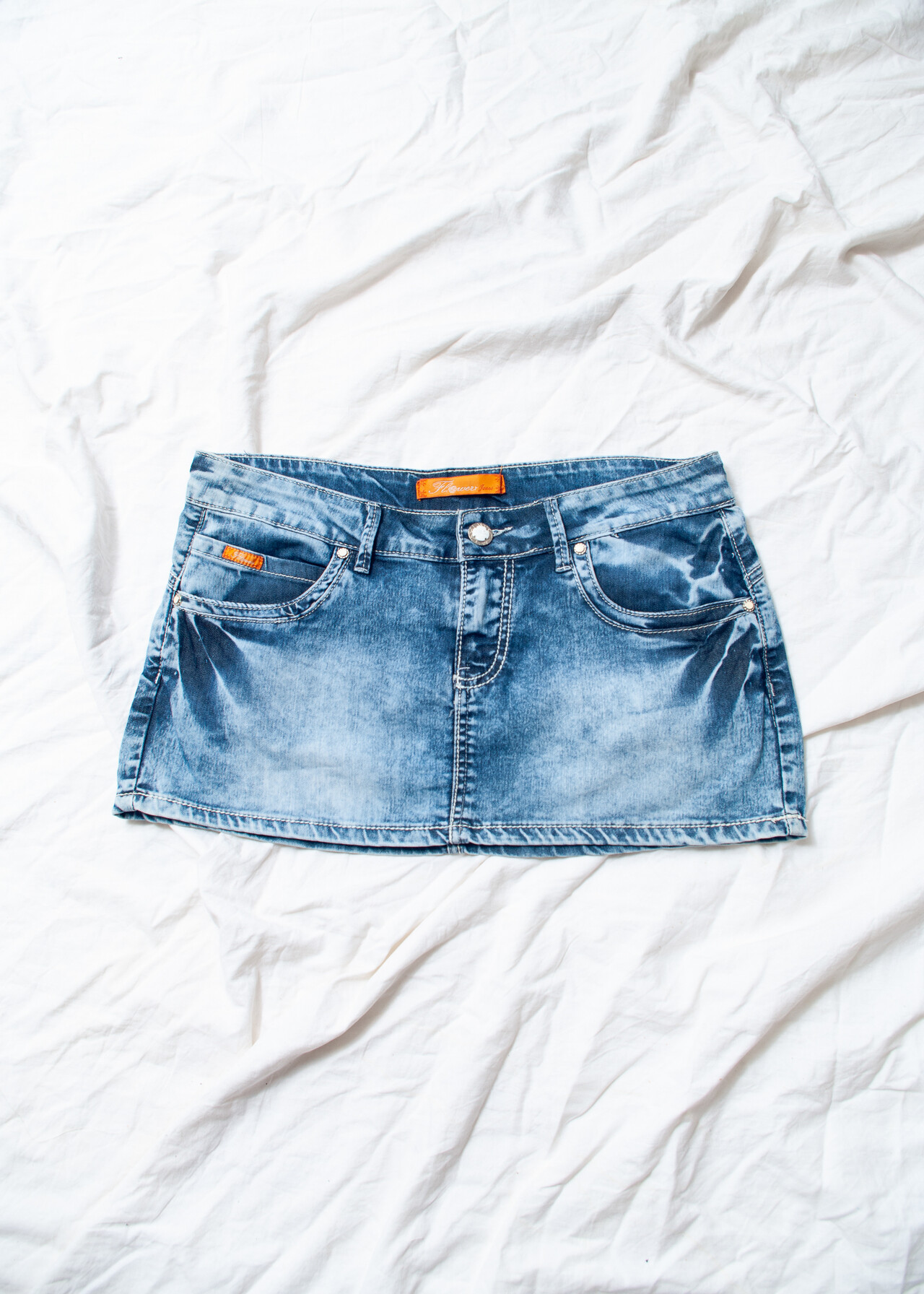 Tags: 2000s style clothing, denim micro skirt, jeans skirt, low rise waist, stonewashed denim, y2k grunge outfit, y2k vintage fashion
