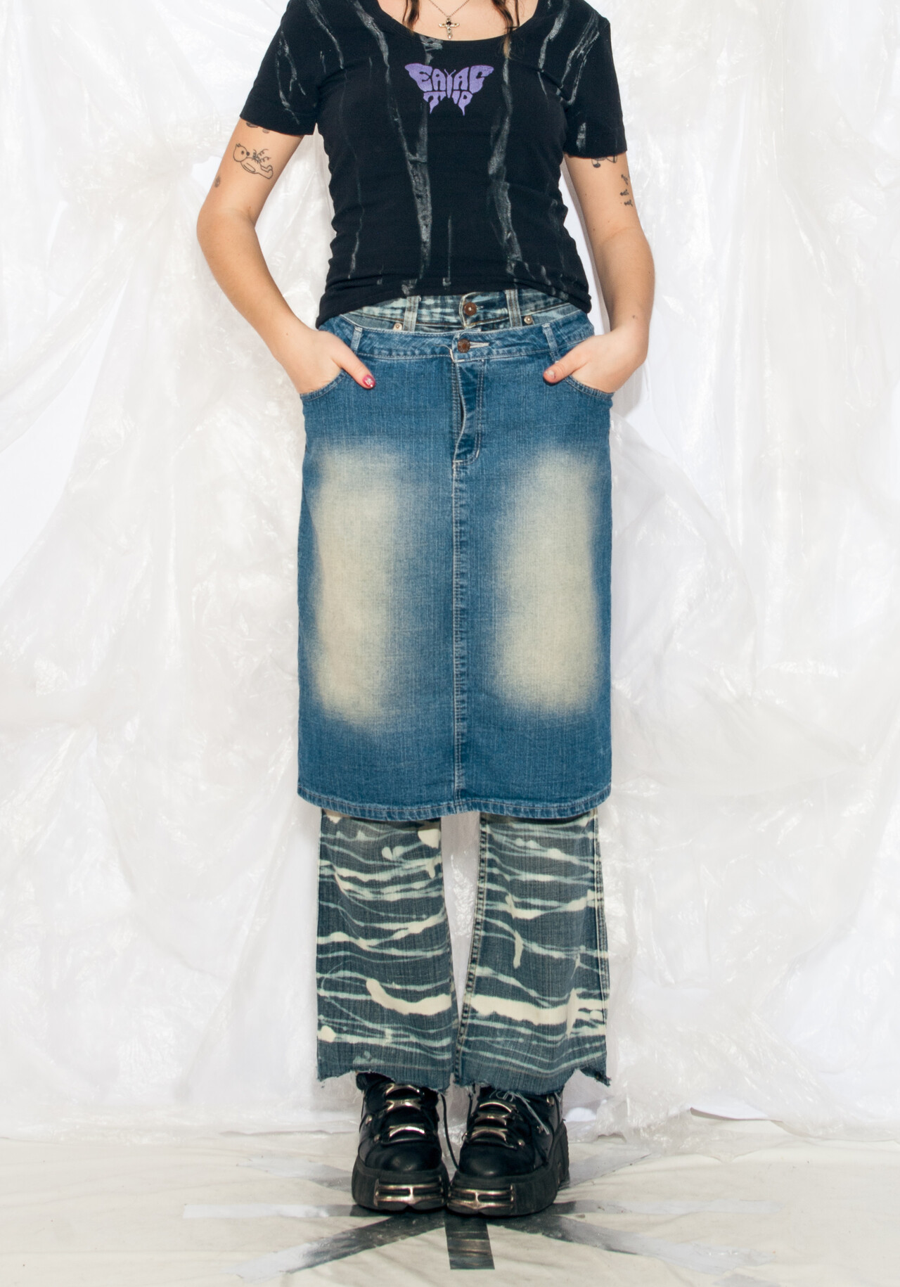 A Y2K vintage denim skirt in flawless condition. It features four pockets, stonewashed details and a zip closure. Not to mention its perfect midi cut.