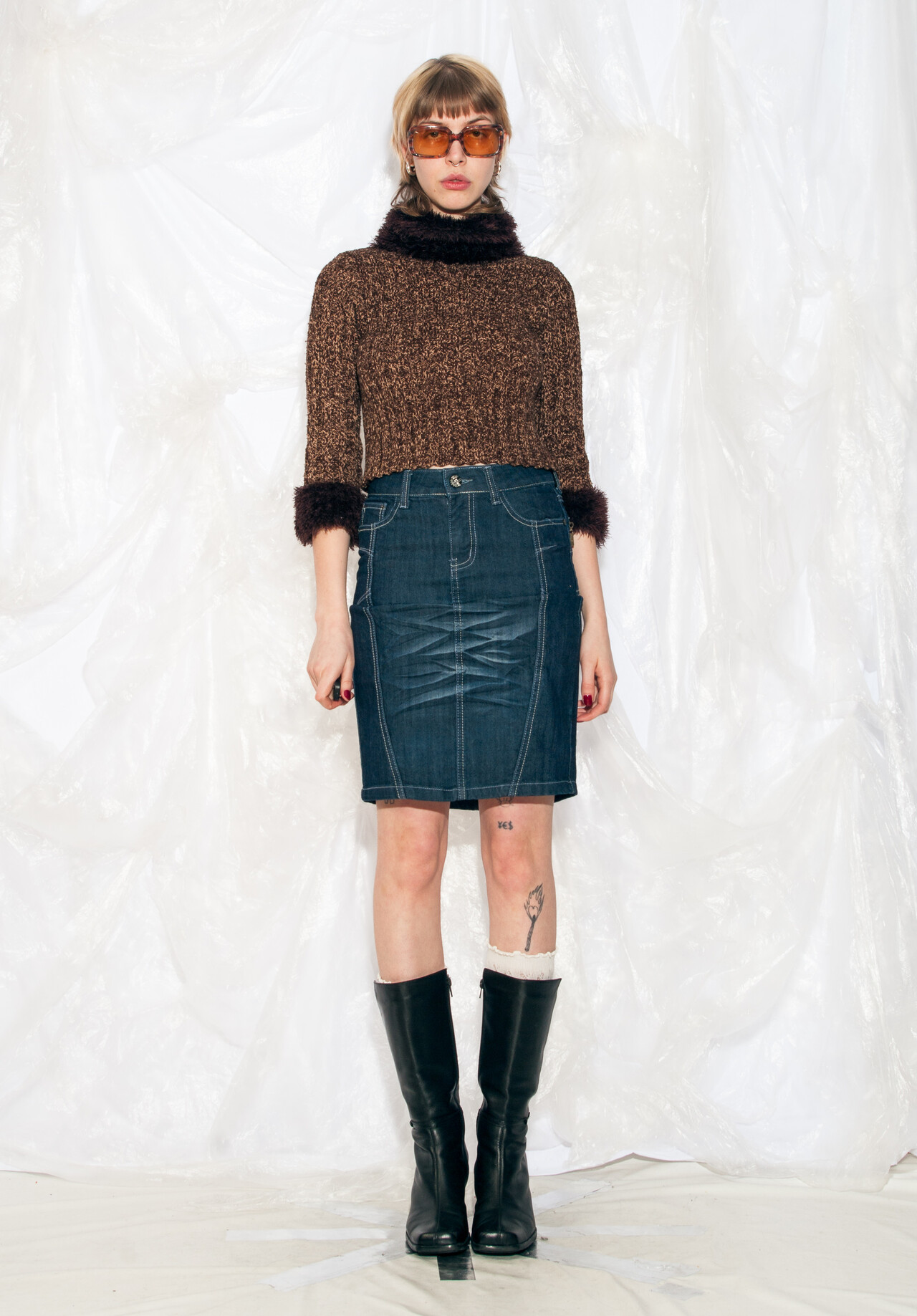 This stonewashed Y2K vintage skirt is like a cool time capsule. Slip into this midi pencil skirt and get ready to rock some serious nostalgic vibes!