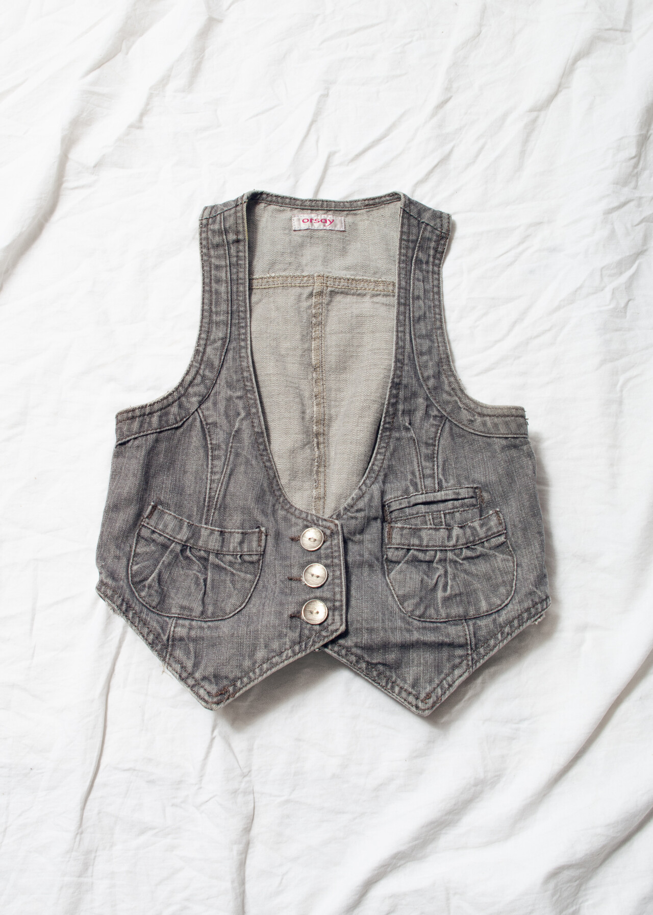 Tags: 2000s style clothing, denim vest, fitted waistcoat, stonewashed jeans, y2k grunge outfit, y2k vintage fashion