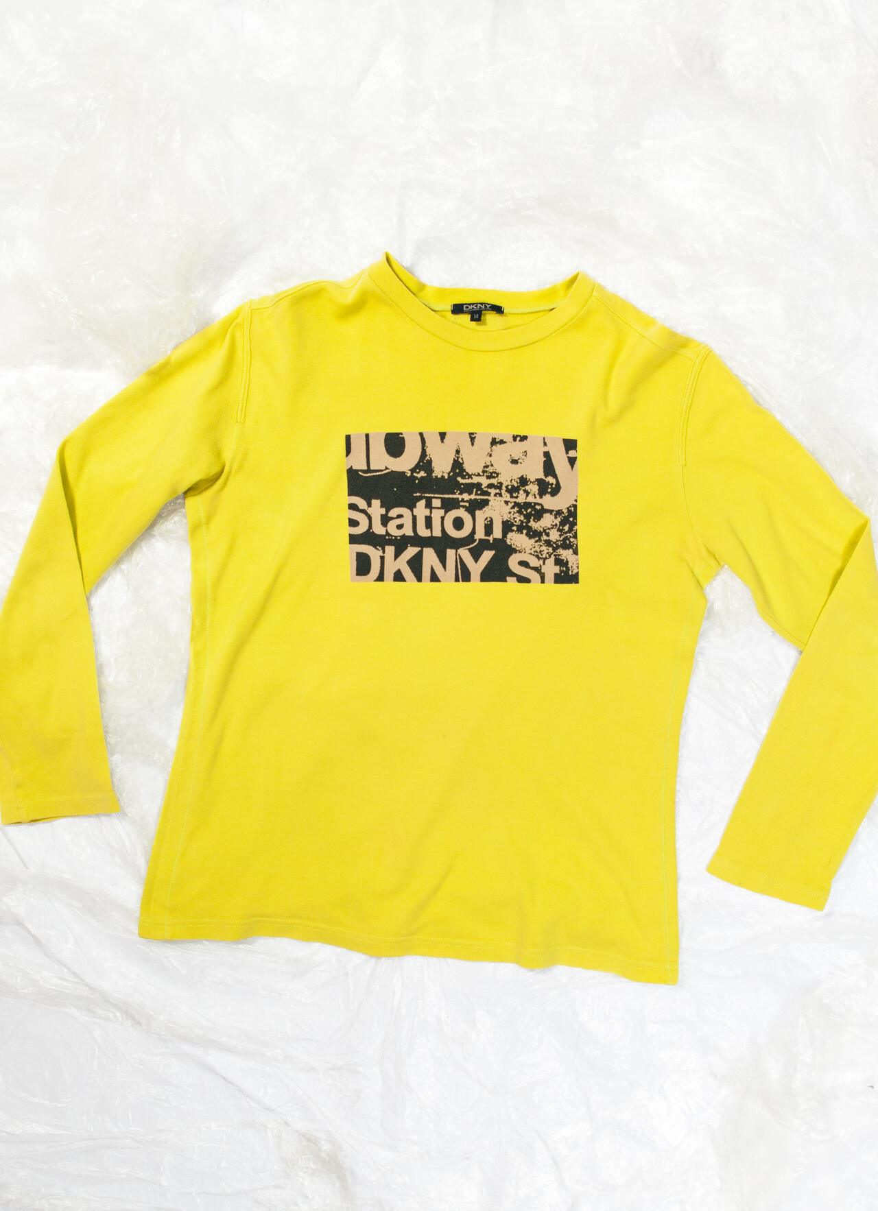 This DKNY vintage long-sleeve tee has the eclectic energy of an illegal teenage rave.