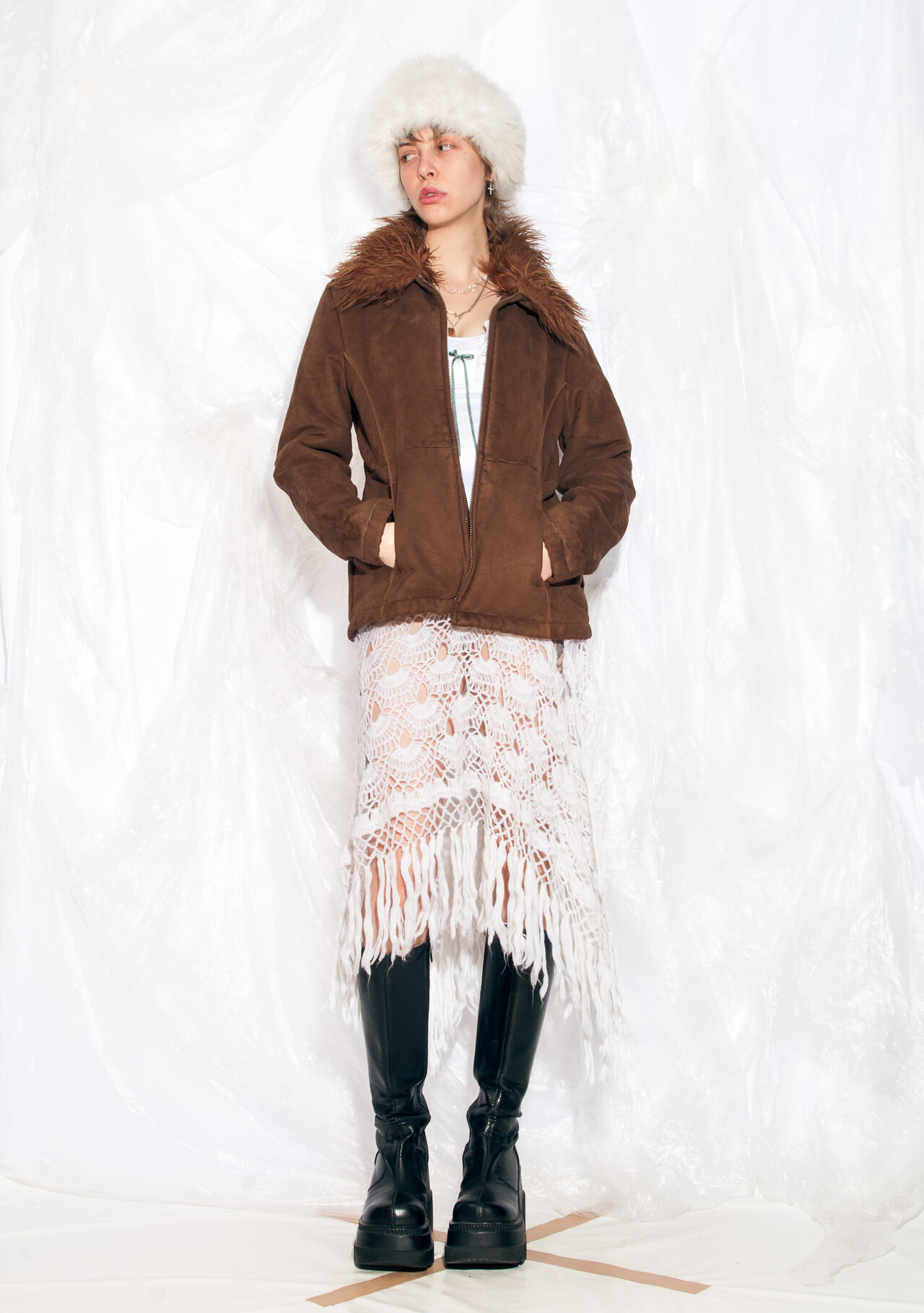 This Y2K vintage shearling coat will have you feeling like a fashionable member of the N’Sync fan club with its faux suede exterior and faux fur collar. Say “bye bye bye” to boring winter jackets!