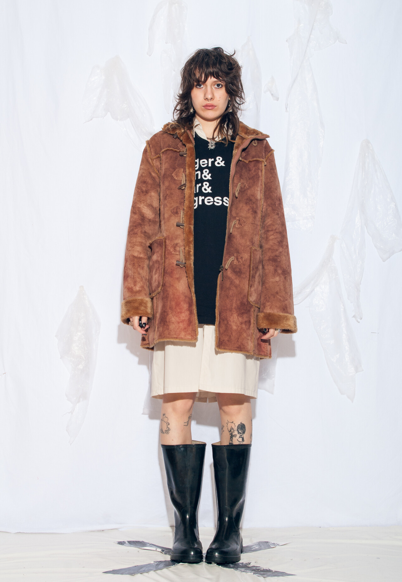 Tags: 2000s vintage style, boho jacket, faux leather coat, faux shearling, Penny Lane, whimsigoth