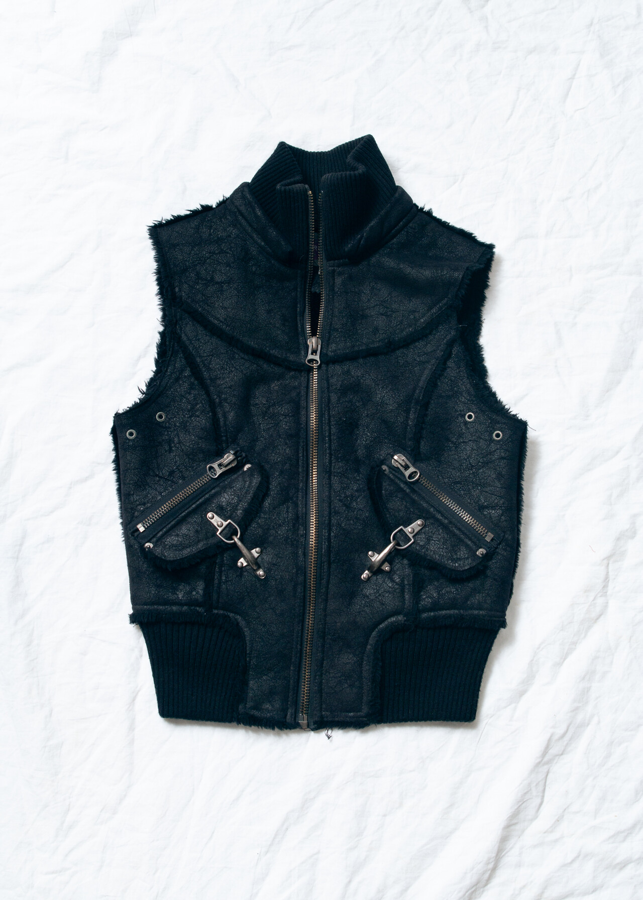 Tags: 2000s style clothing, cargo techwear, fake leather vest, faux shearling coat, suede waistcoat, y2k grunge outfit, y2k vintage fashion