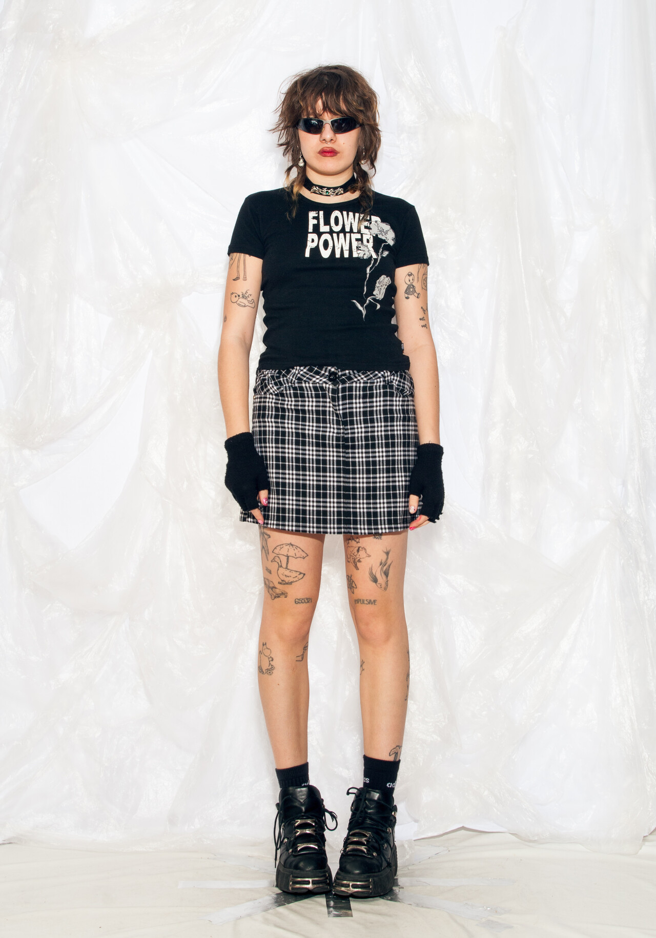 Be the first to review “Vintage Y2K Flower Power Baby Tee in Black Cotton” Cancel reply