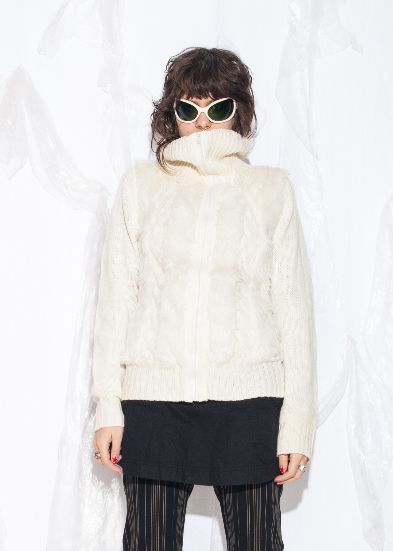 Tags: 2000s vintage style, furry knit cardigan, raver