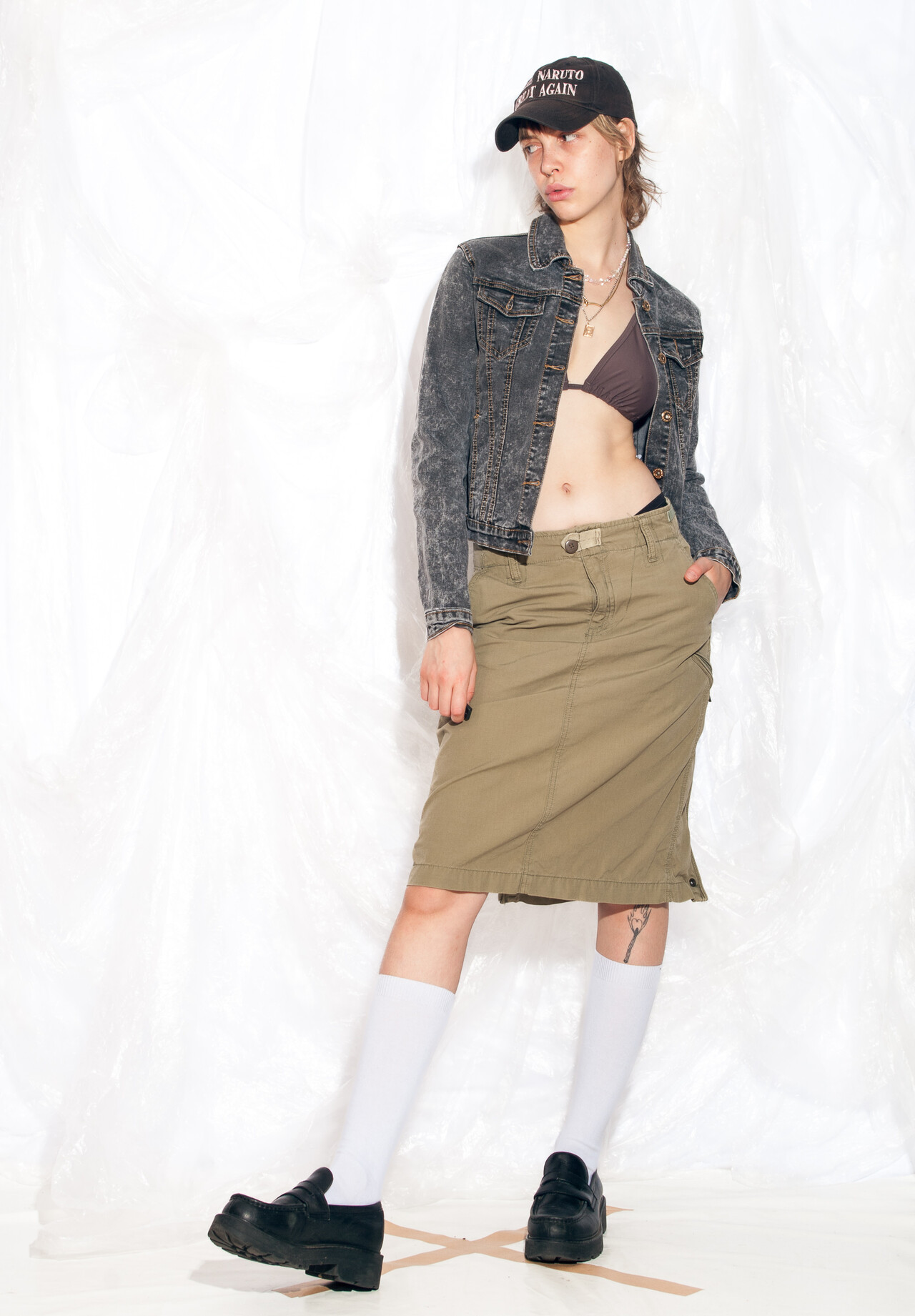 Vintage Y2K G-Star Raw Cargo Skirt in Khaki with Slit Zips