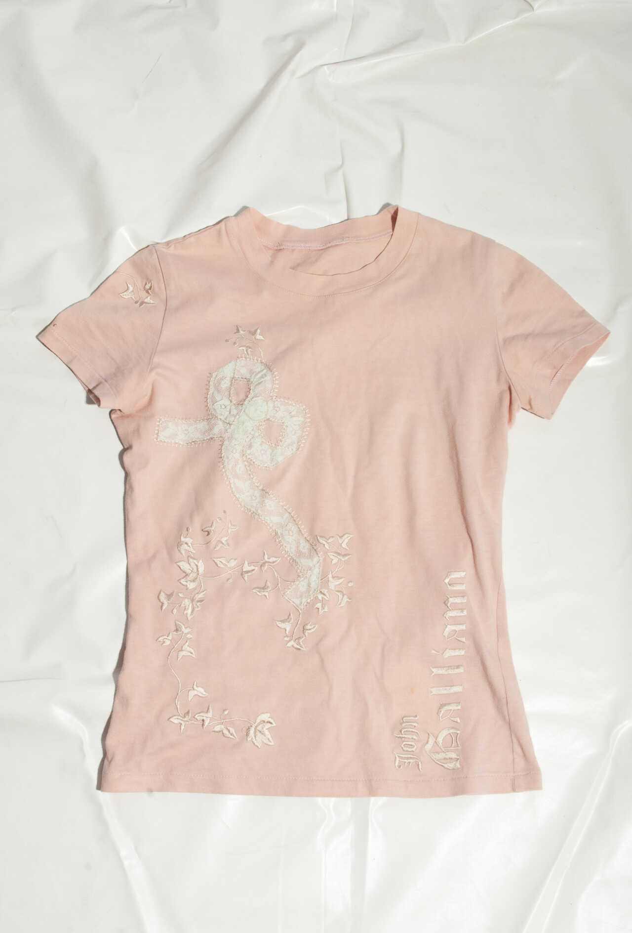 Be the first to review “Vintage Y2K Galliano Baby Tee in Pink Lace Bow Embroidered” Cancel reply