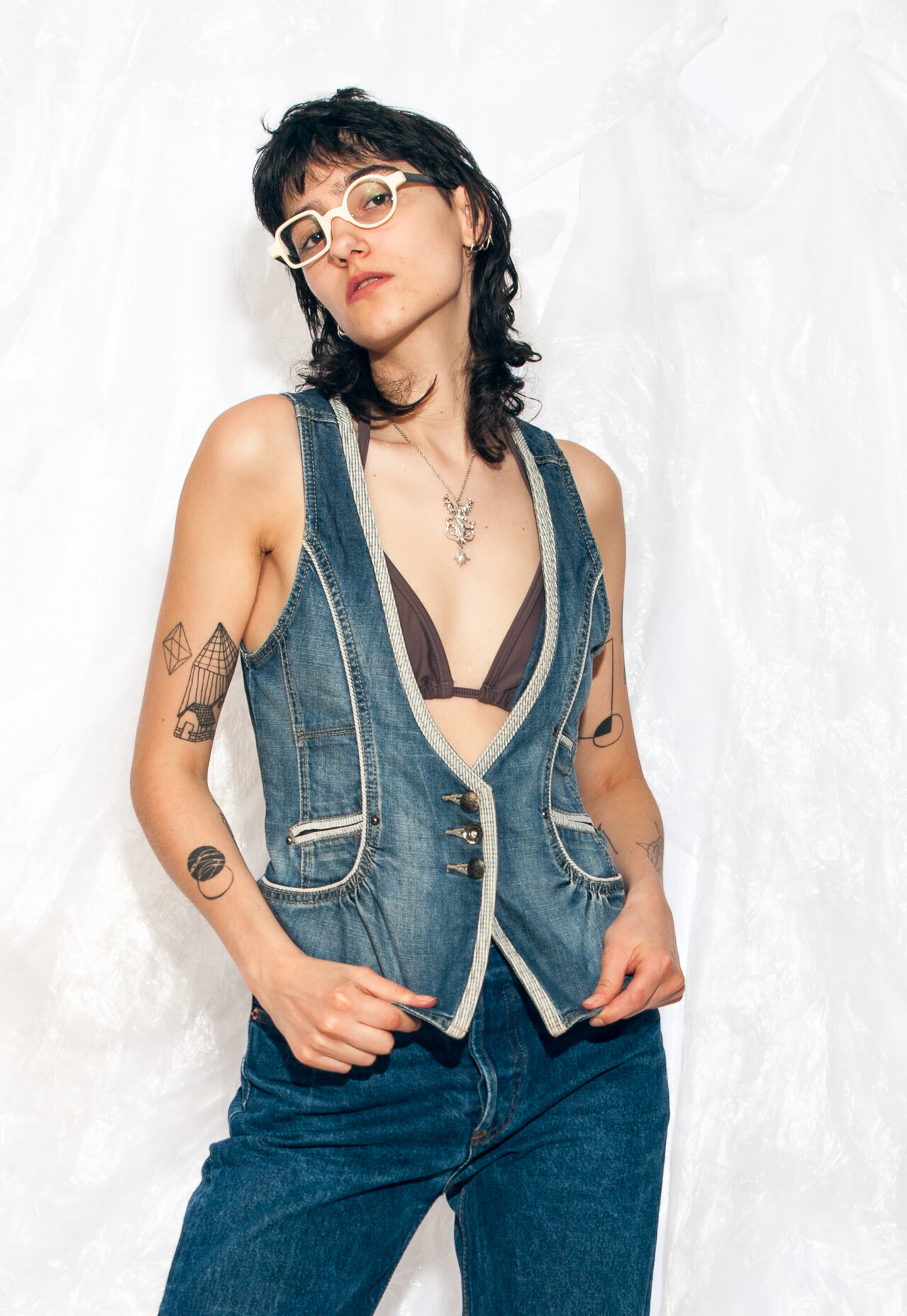 Y2K vintage vest – because who doesn’t need a denim hug straight from the early 2000s?