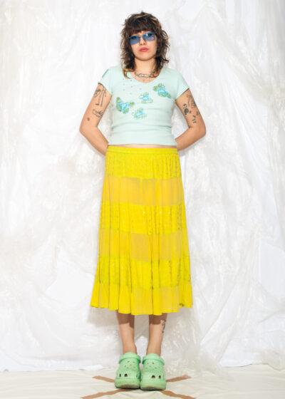 Vintage Y2K Tiered Skirt Fairycore Maxi in Yellow