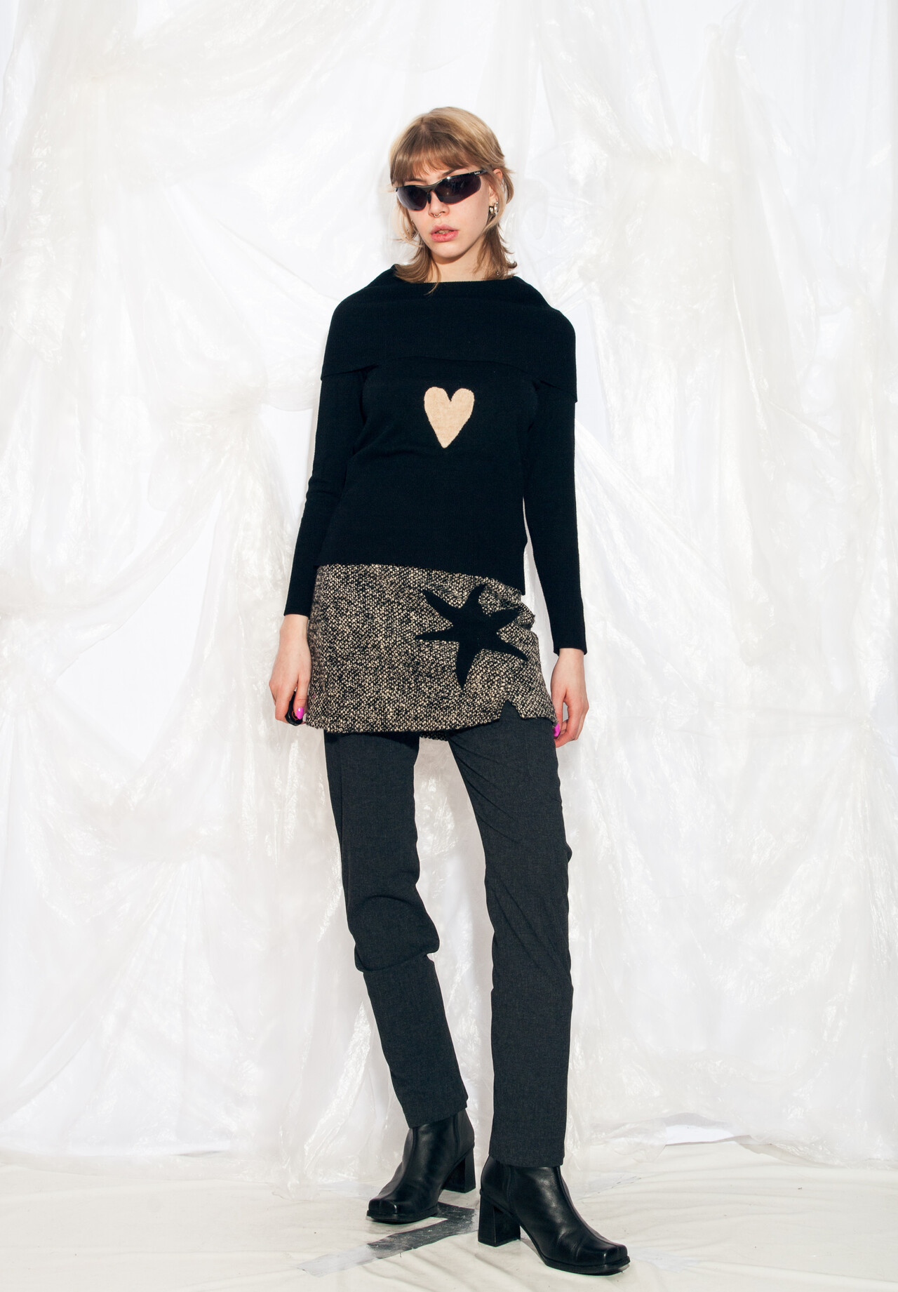 Vintage Y2K Knit Jumper in Black w Reworked Heart Patch