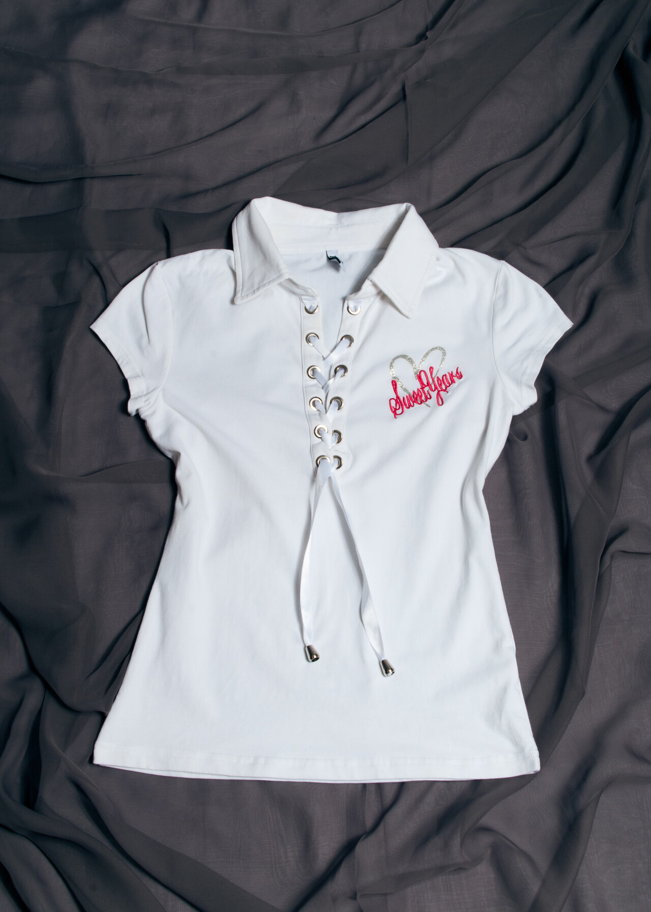 Tags: 2000s vintage style, collar top, lace up baby tee