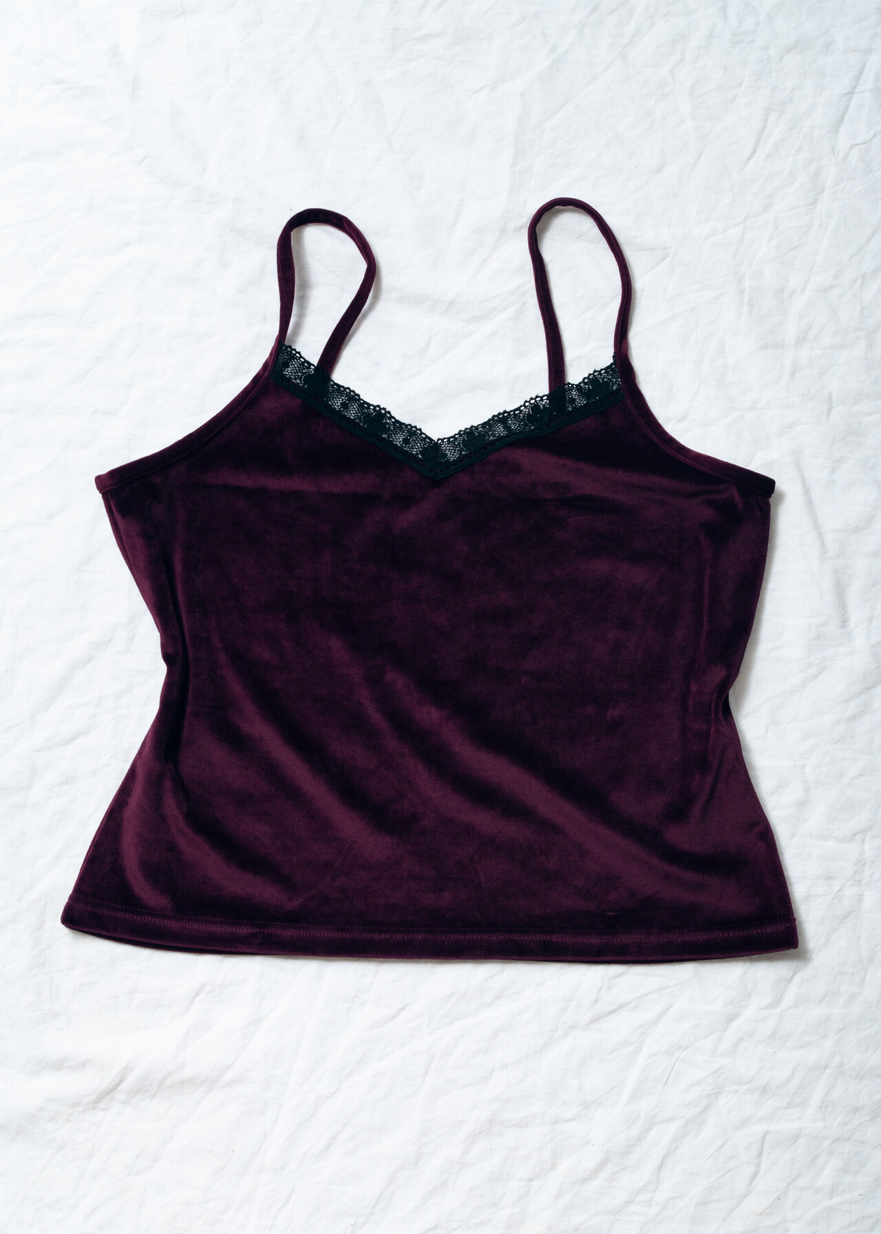 Tags: 2000s vintage fashion, lace camisole top, purple blouse, spaghetti straps, vampire goth, velvet crop top, whimsigoth, y2k grunge outfit, y2k style clothing