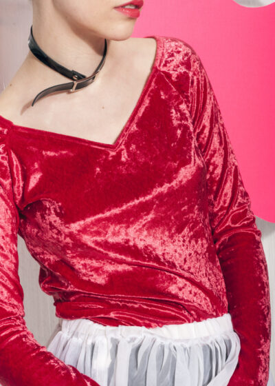 Vintage Velvet Top 90s Long Sleeve Top in Red