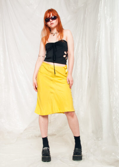 Vintage Silk Skirt Y2K Fluid Yellow Midi