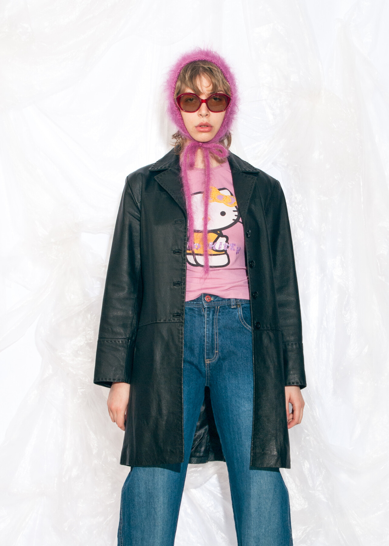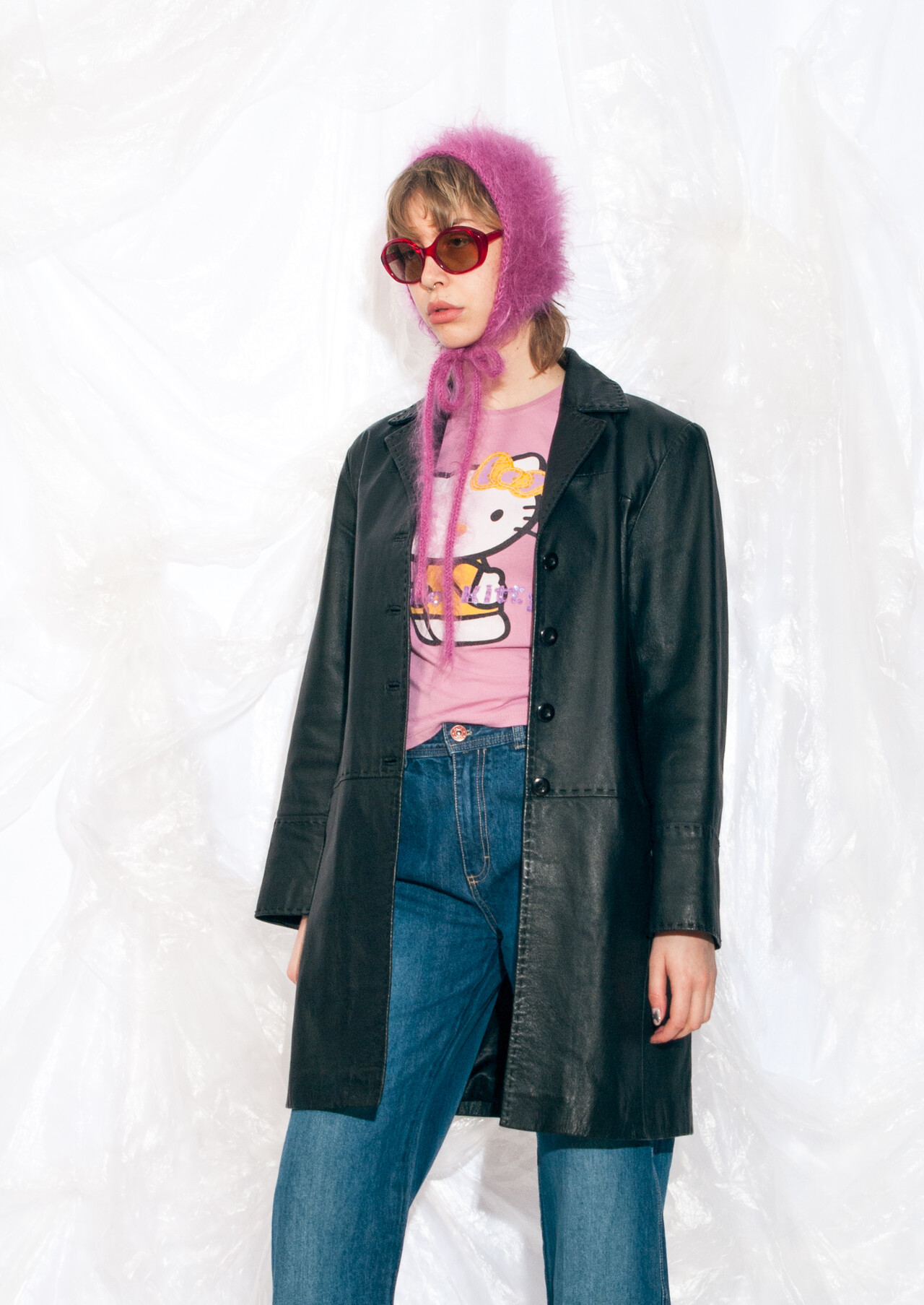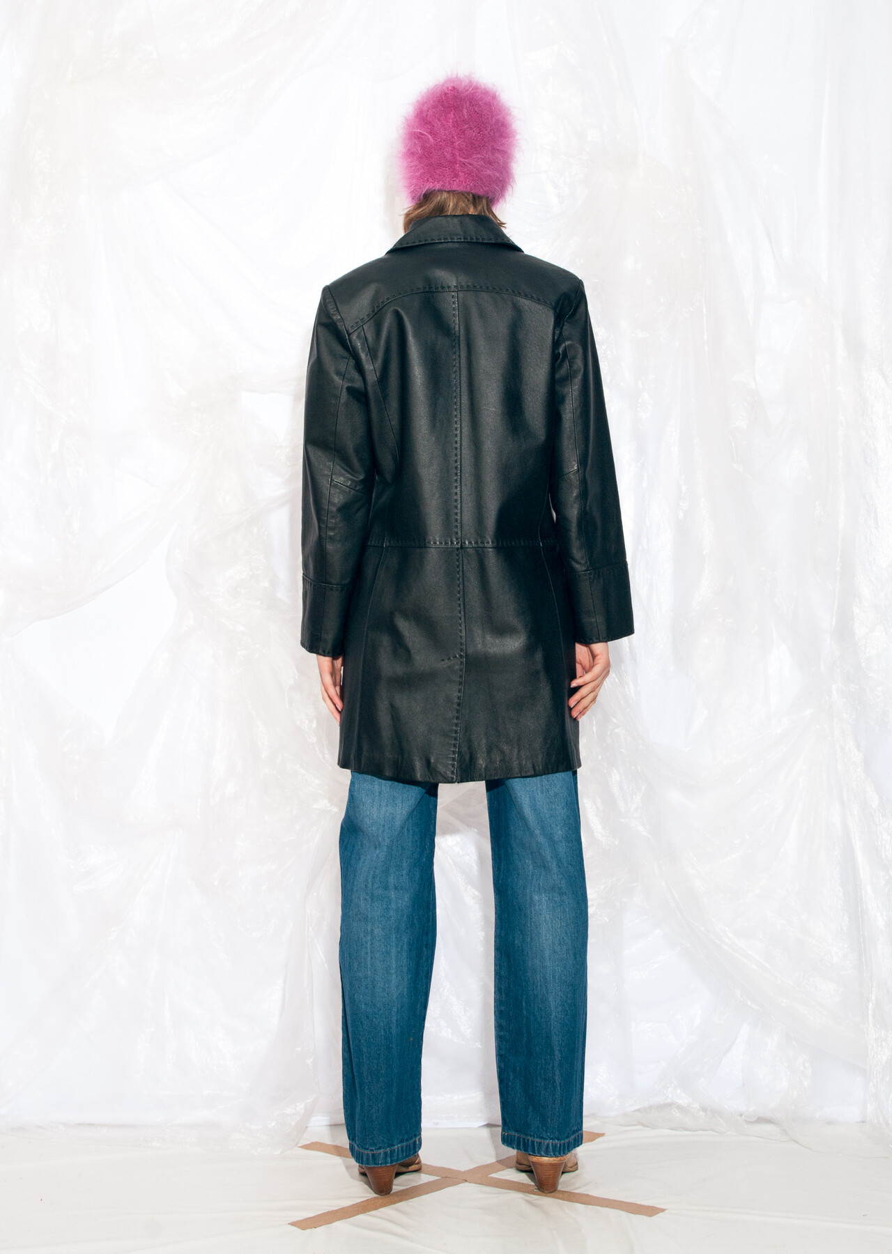 This black Y2K vintage leather coat promises to teleport you back to the time of flip phones and denim everything. It’s a 2000s gem that will make you wonder why low-rise jeans ever went out of style.