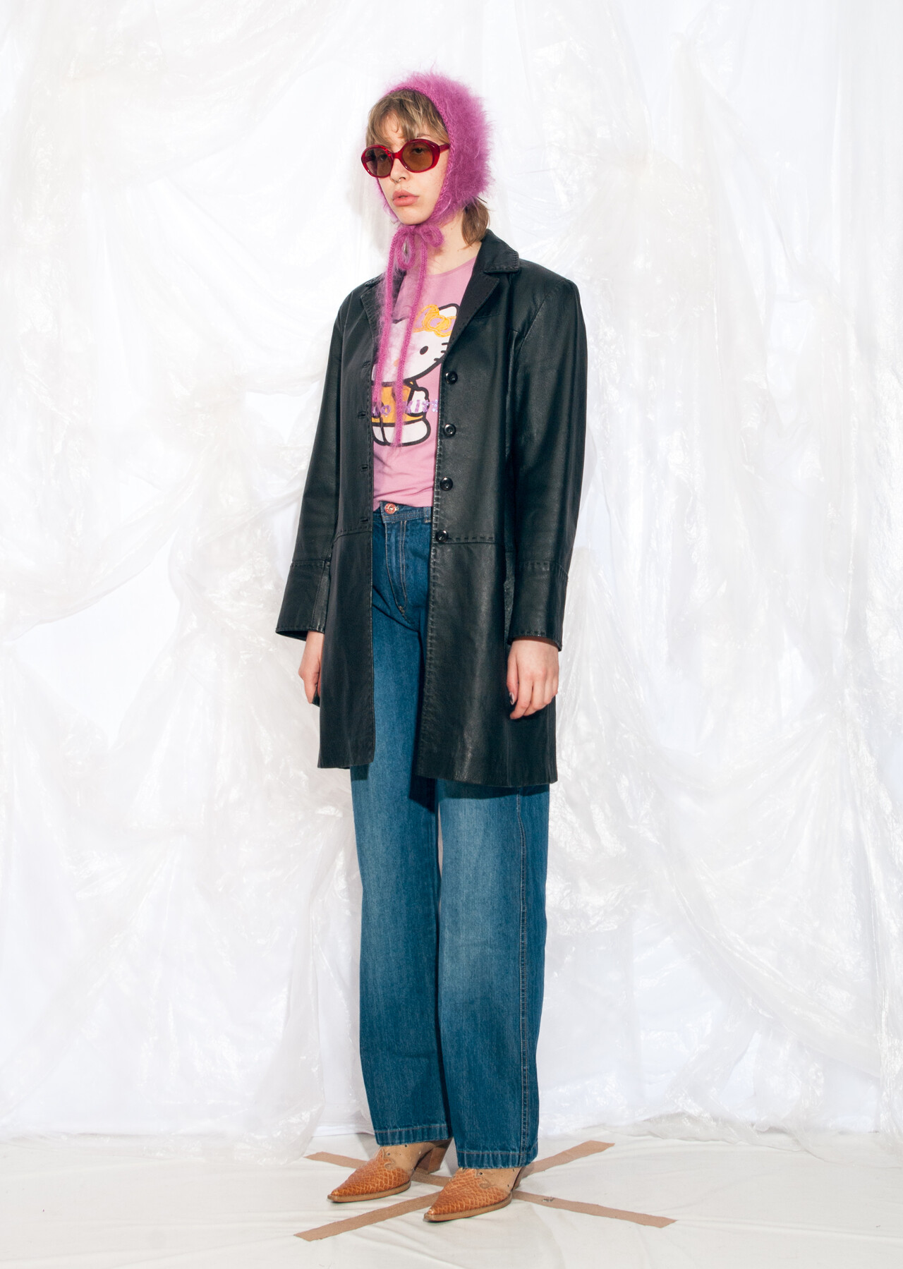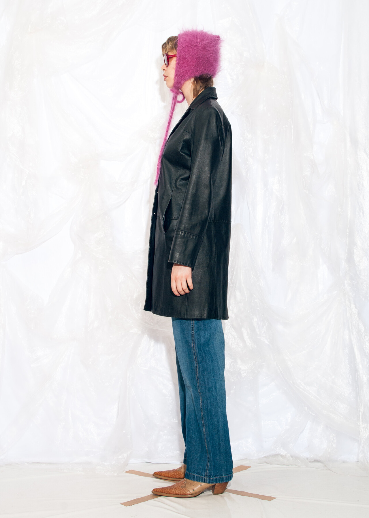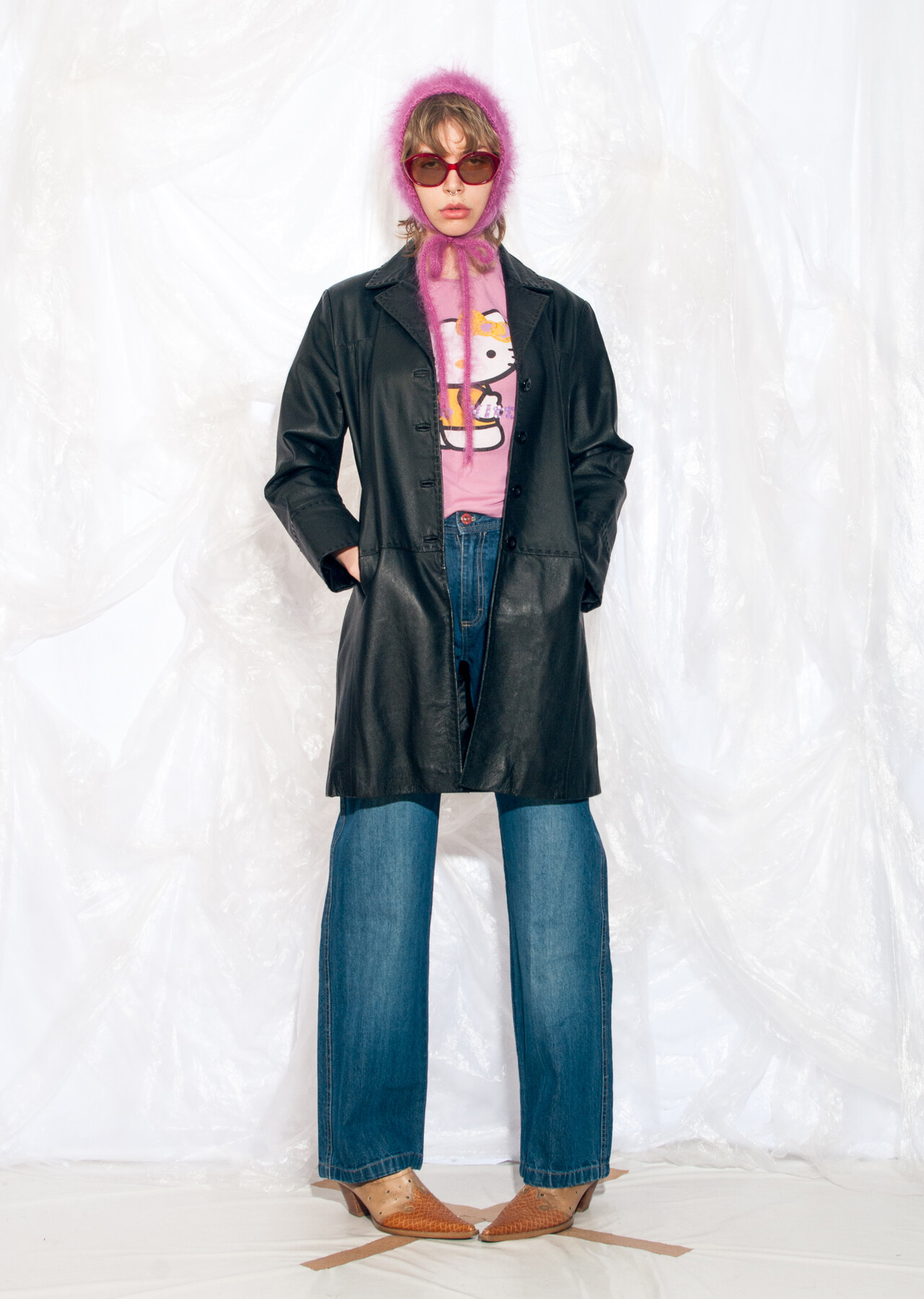 This black Y2K vintage leather coat promises to teleport you back to the time of flip phones and denim everything. It’s a 2000s gem that will make you wonder why low-rise jeans ever went out of style.