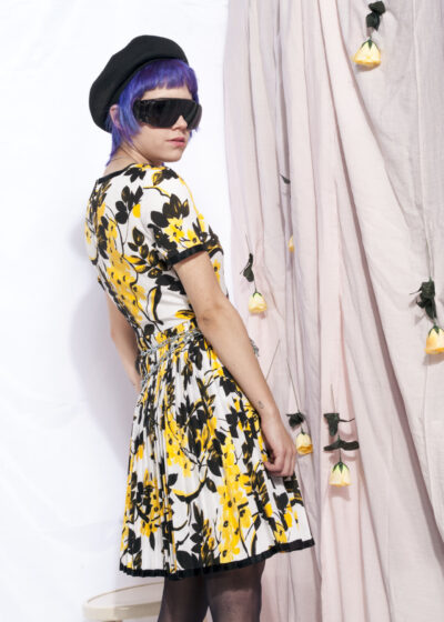 Vintage dress 60s wedding prom yellow floral pleated dress