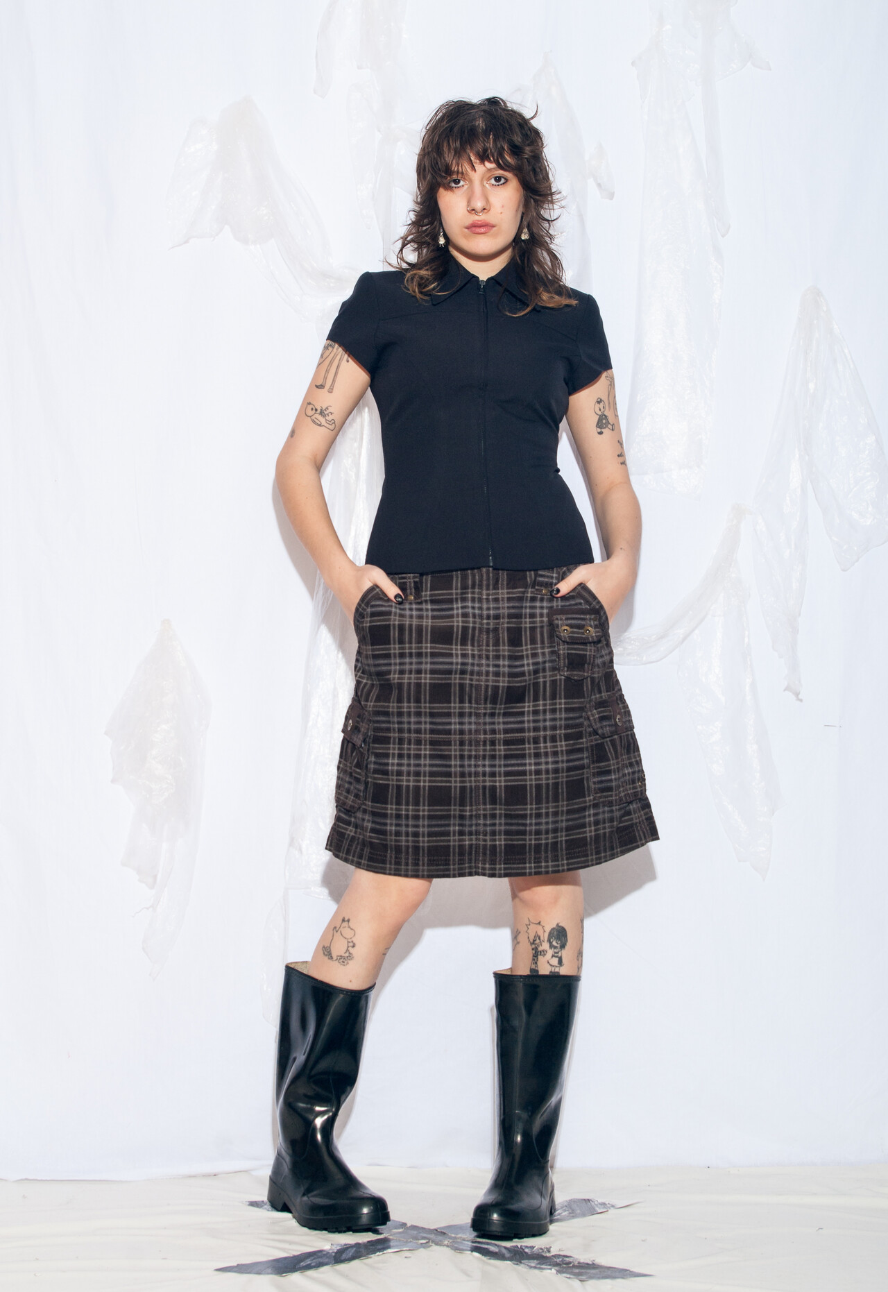 This Y2K vintage skirt is the cargo companion you’ve been missing, straight from an era when grunge met whimsigoth and brown was the new black.