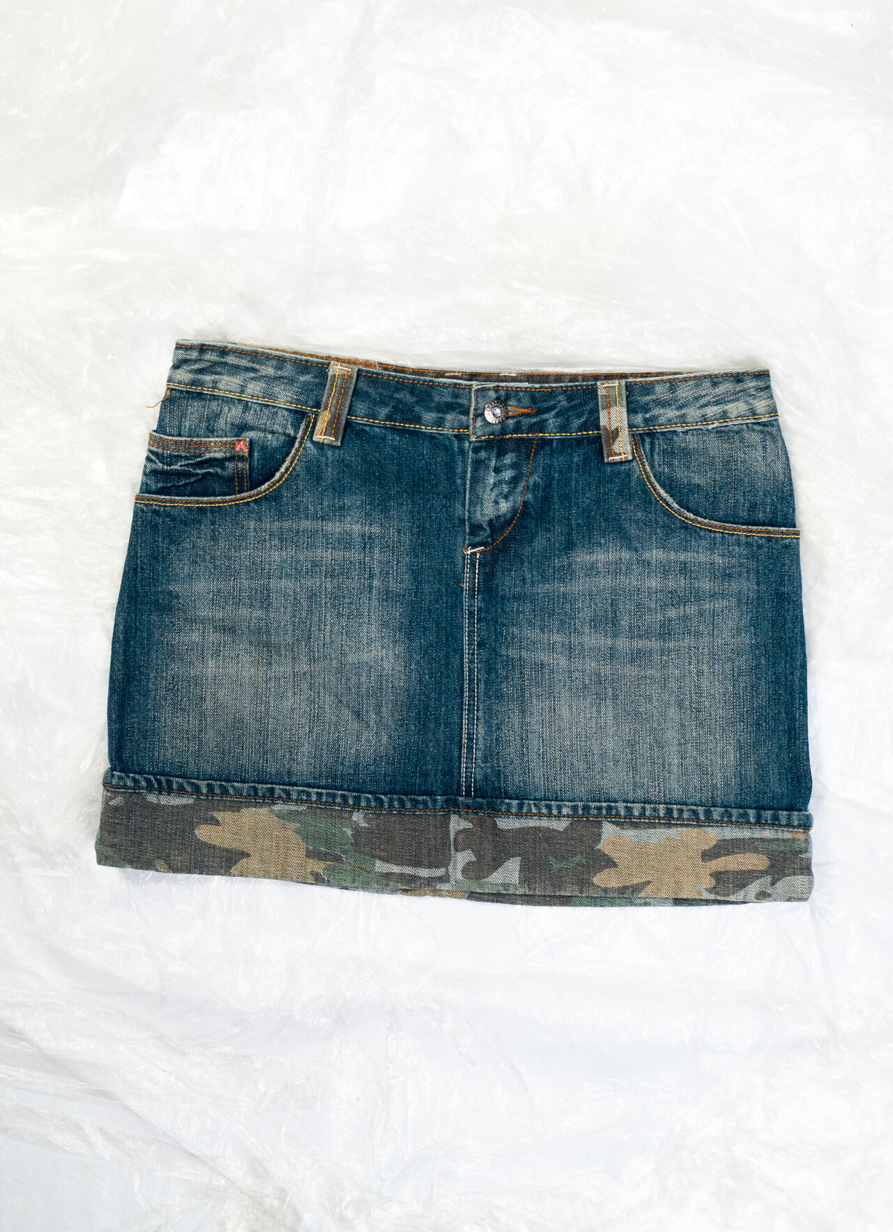 Vintage Y2K Mini Skirt in Blue Denim Camo