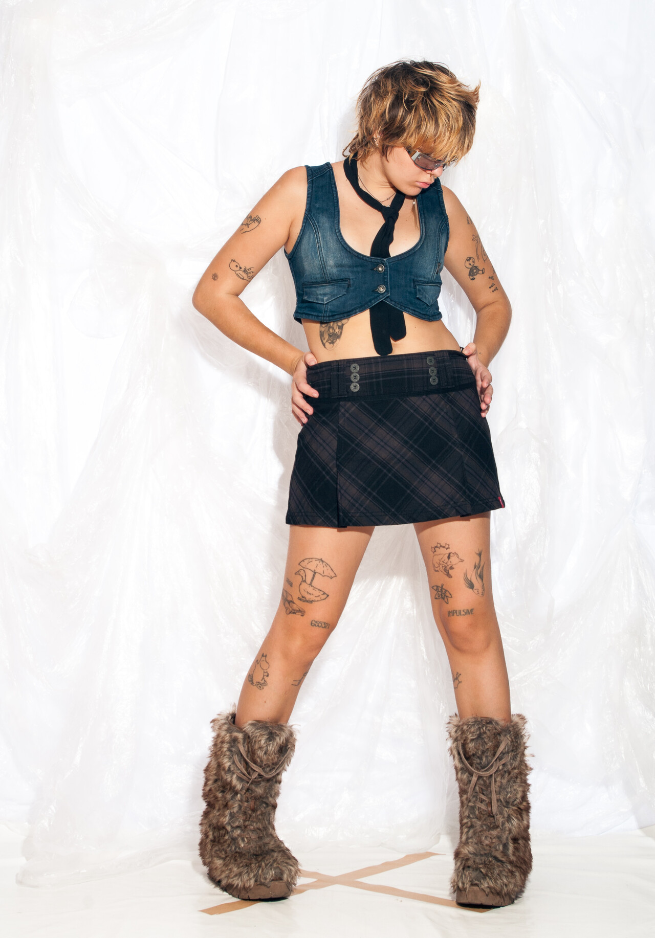 Step into the fashion time machine with this punk-tinged Y2K vintage skirt. Its mini style and undeniable swagger will have you feeling like an emo teen from the dawn of the new millennium.