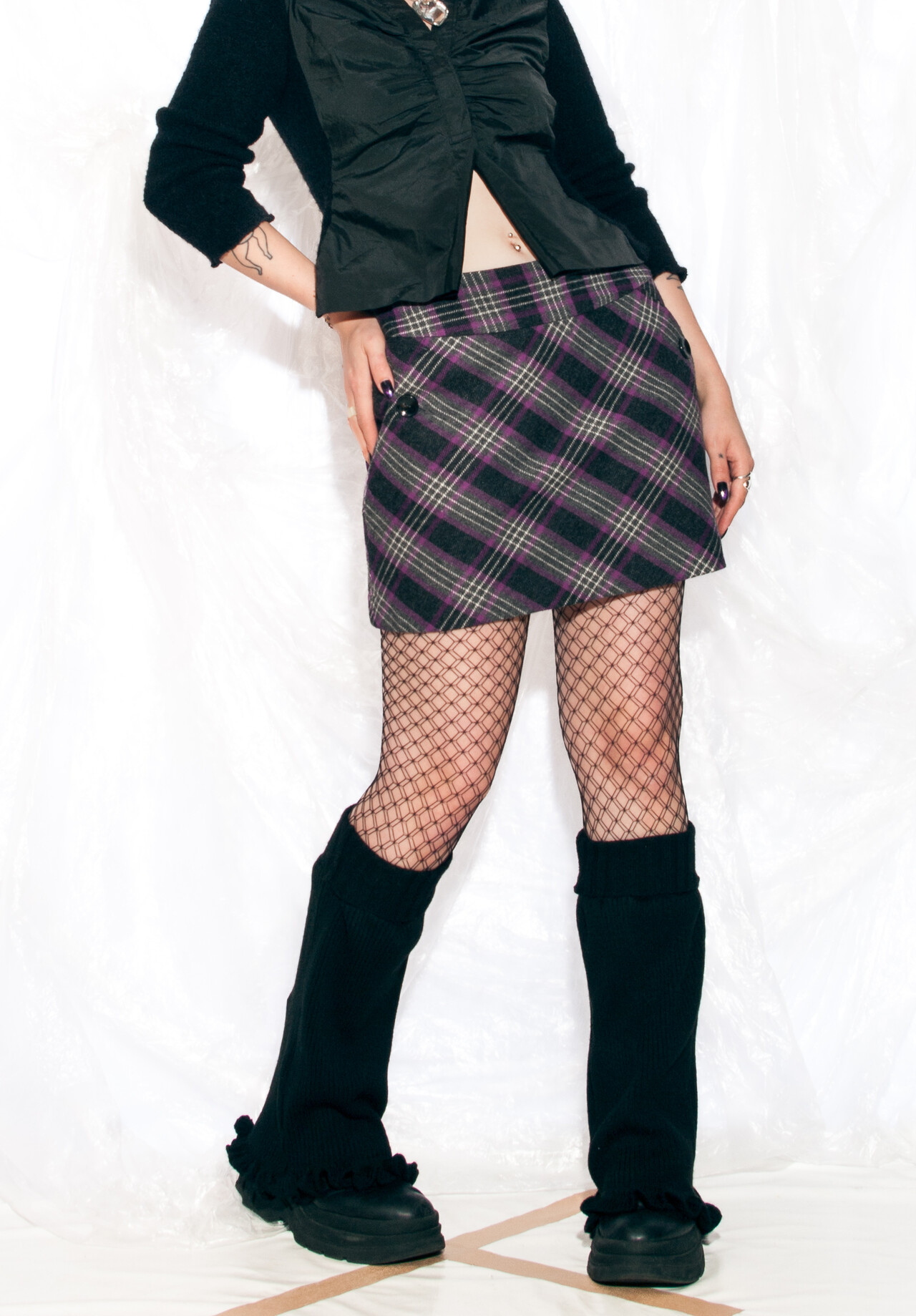 Vintage Y2K Mini Skirt in Purple Plaid Wool