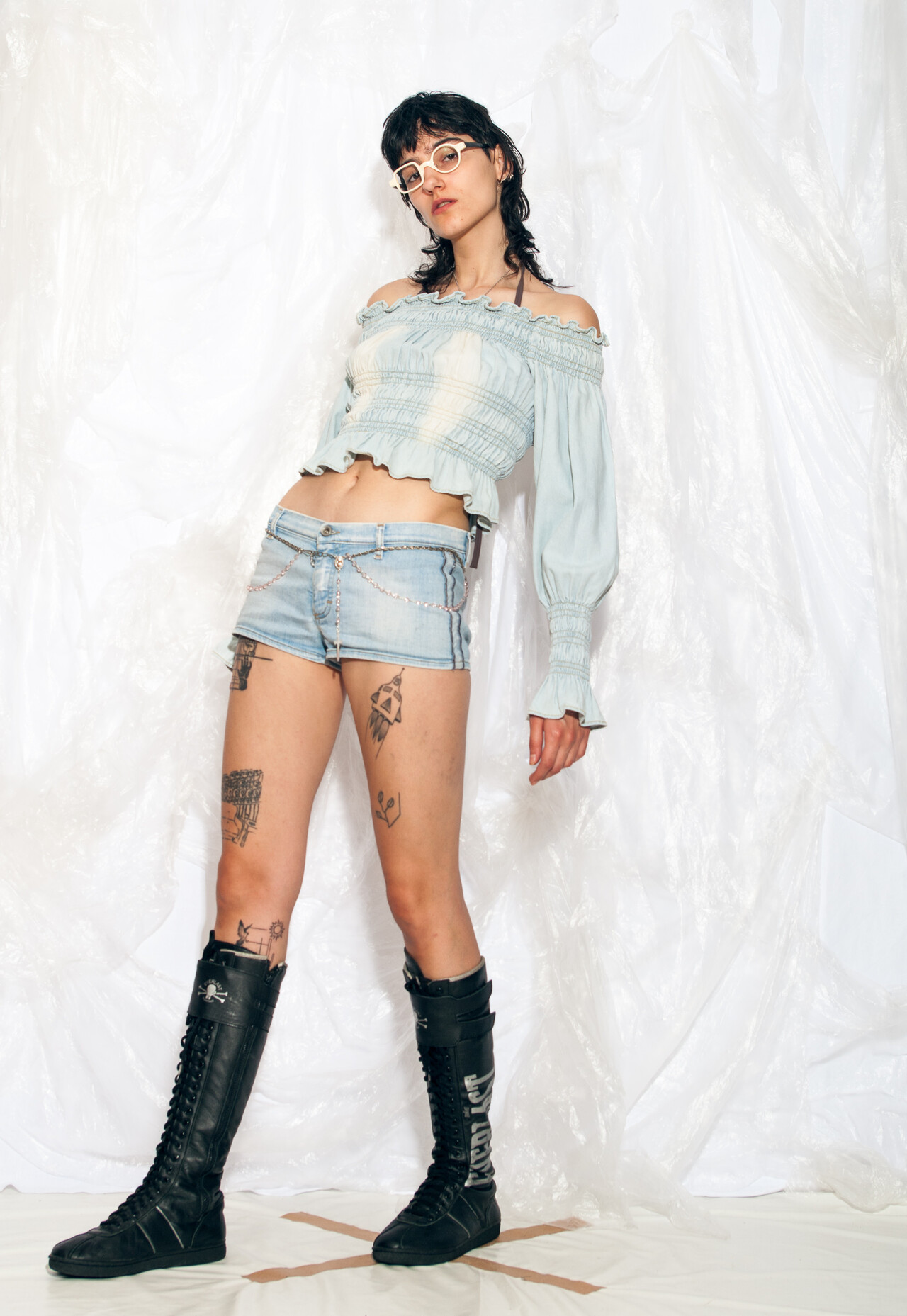 Be the first to review “Vintage Y2K Off Shoulder Top in Blue Denim” Cancel reply