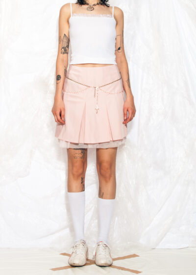 Vintage Y2K Pleated Skirt in Pastel Pink Tulle