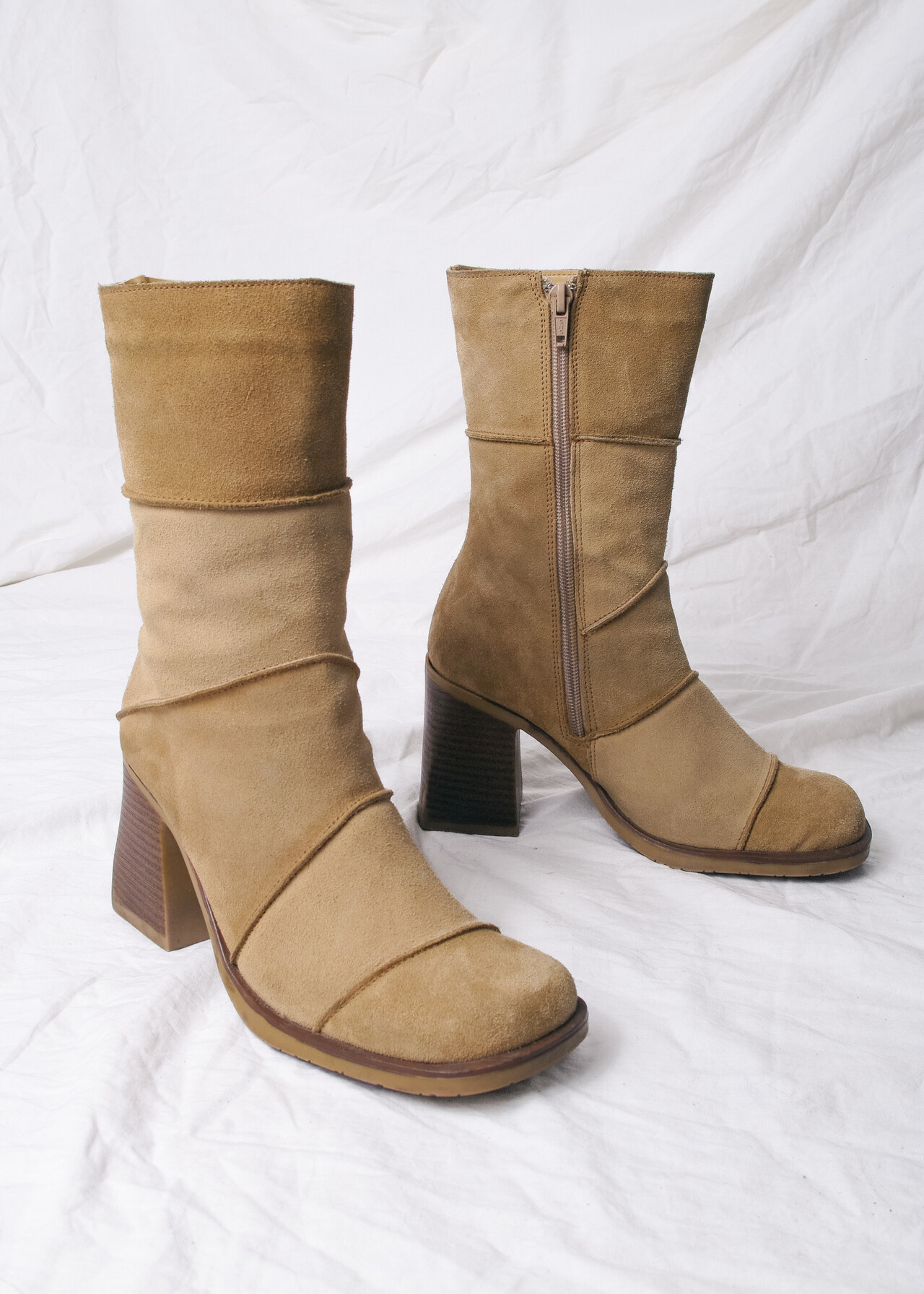 These Y2K vintage patchwork suede boots are like strutting around in a history lesson from the early 2000s.