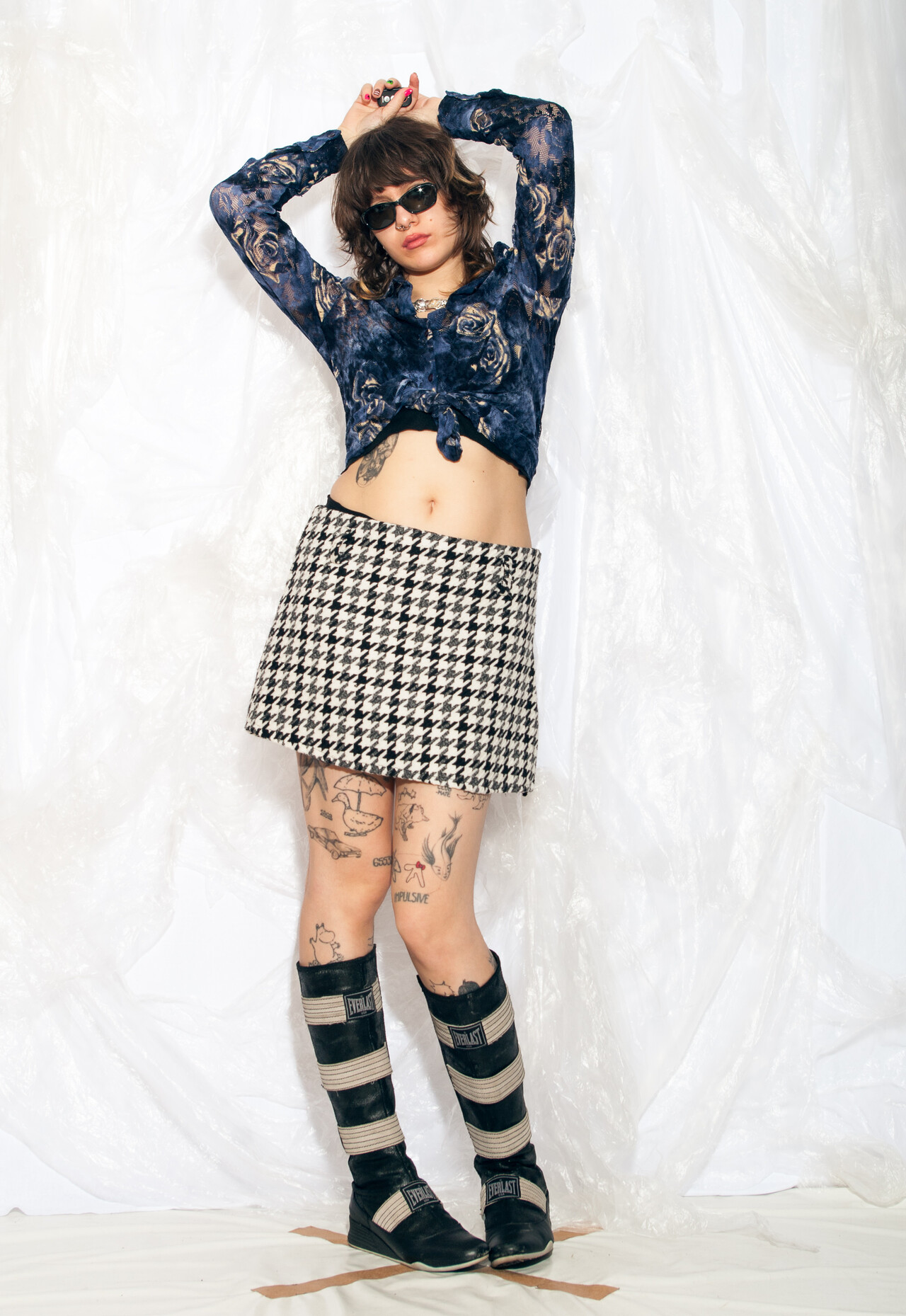 Tags: 2000s vintage style, Clueless, houndstooth, preppy, wool, y2k aesthetic, y2k grunge outfit