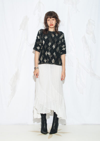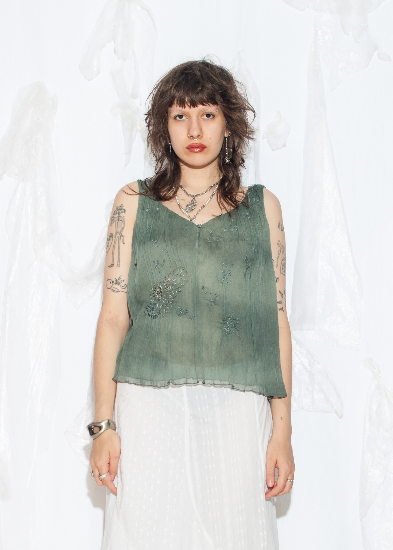 This Y2K vintage top is the fairycore grunge dream made of pure silk that turns every day into a runway of embroidered nostalgia.