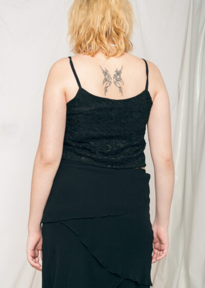 Vintage Crop Top 90s Reworked Festival Singlet in Black Lace