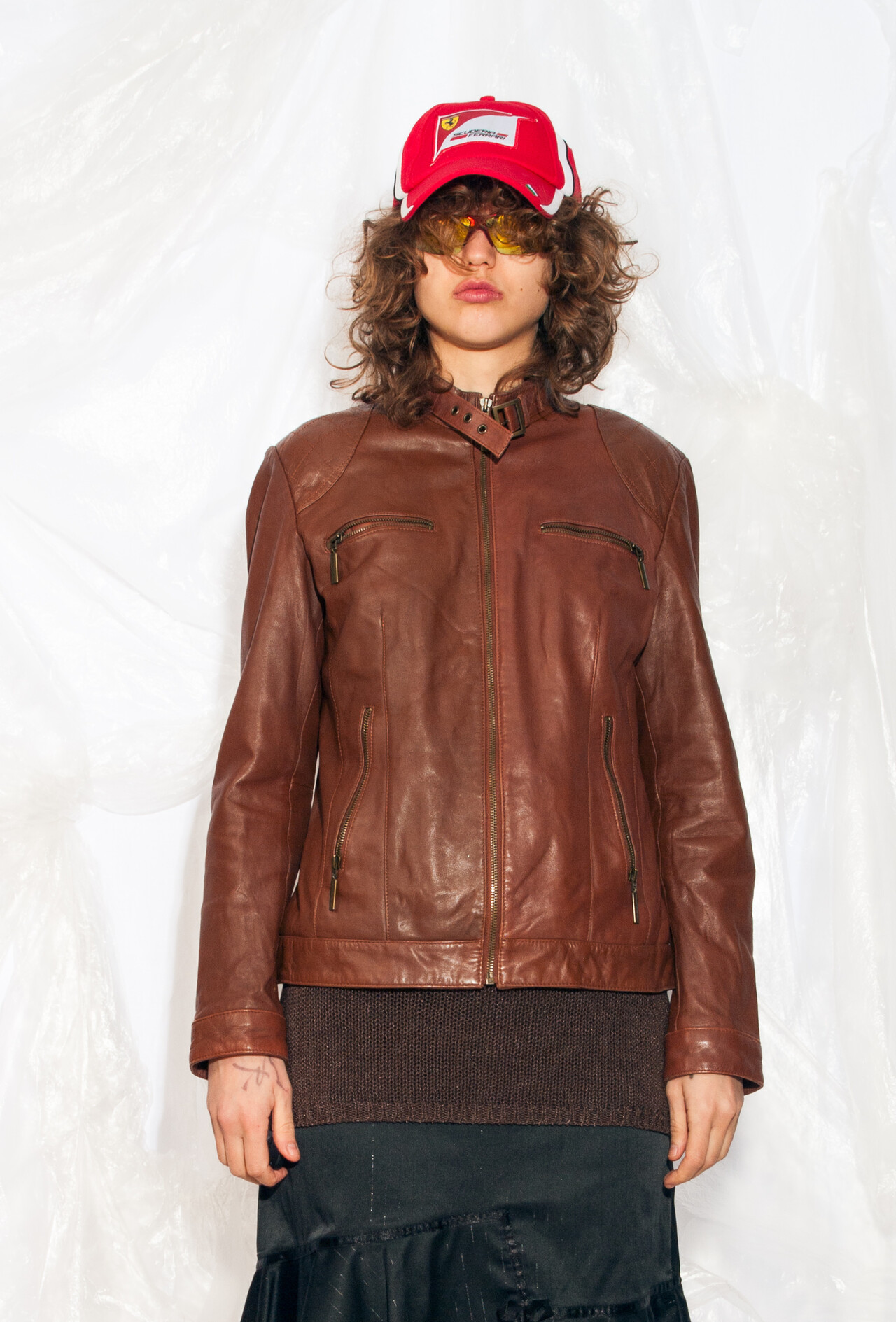 This soft leather Y2K vintage racing jacket is your fast-pass to early 2000s style. Step out in this brown leather beauty and zip through the era of low-rise jeans and Nokia brick phones. Fasten your seatbelt, we’re going back in time!