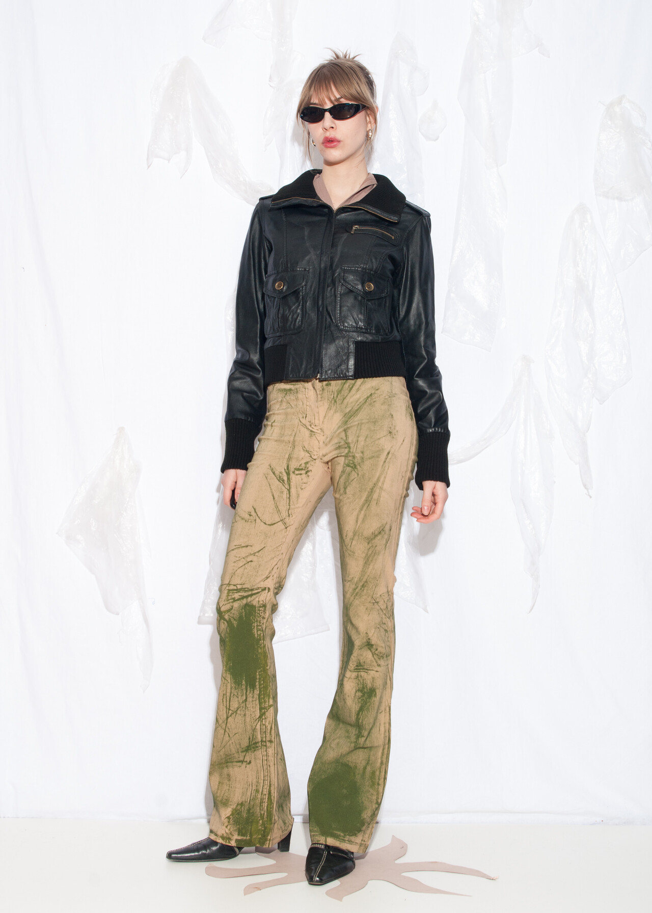 Tags: 2000s vintage style, leather coat, racer jacket, racing style jacket, y2k cropped jacket