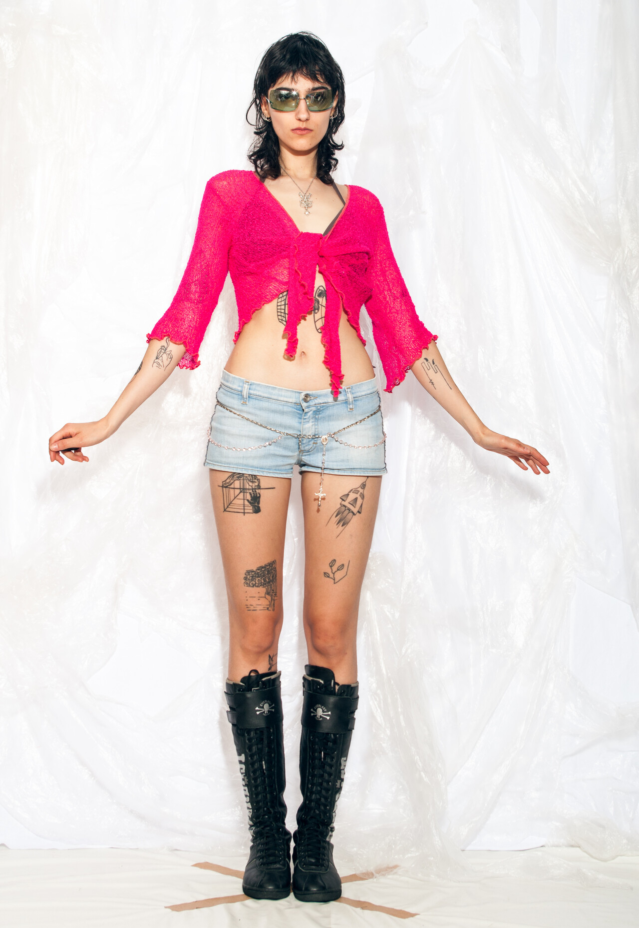 Be the first to review “Vintage Y2K Raver Crop Top Cardigan in Pink” Cancel reply