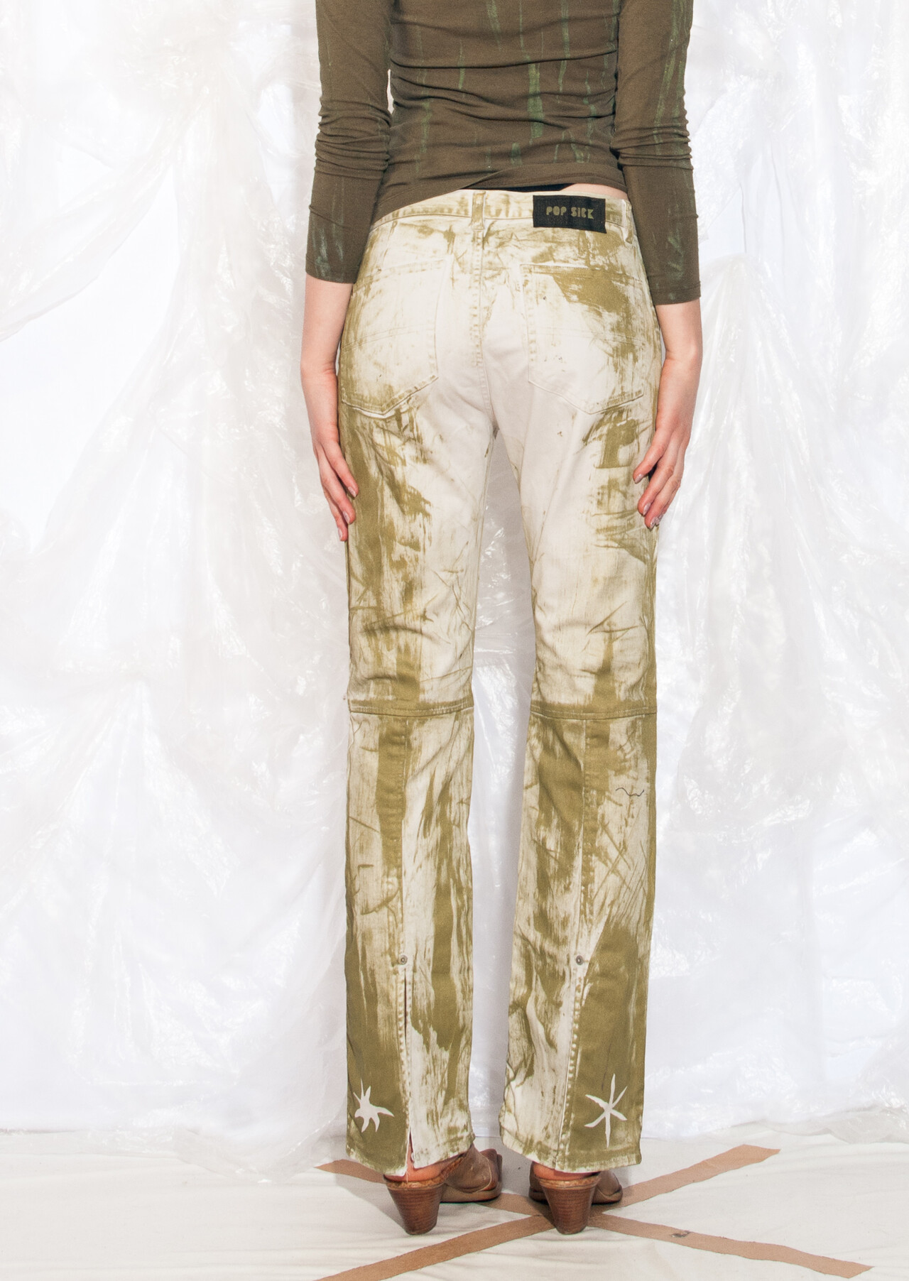 Be the first to review “Vintage Y2K Reworked Flare Jeans in Hand-Painted Green Beige” Cancel reply