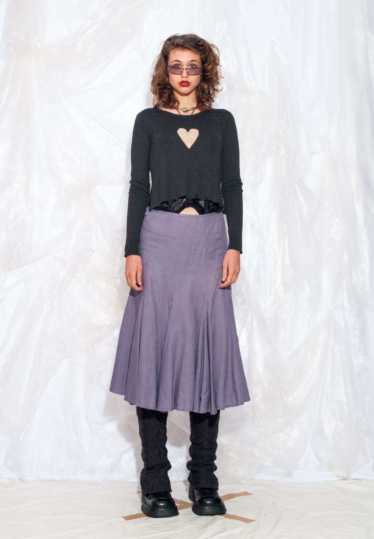 Vintage Y2K Reworked Knit Top in Grey w Heart Patch