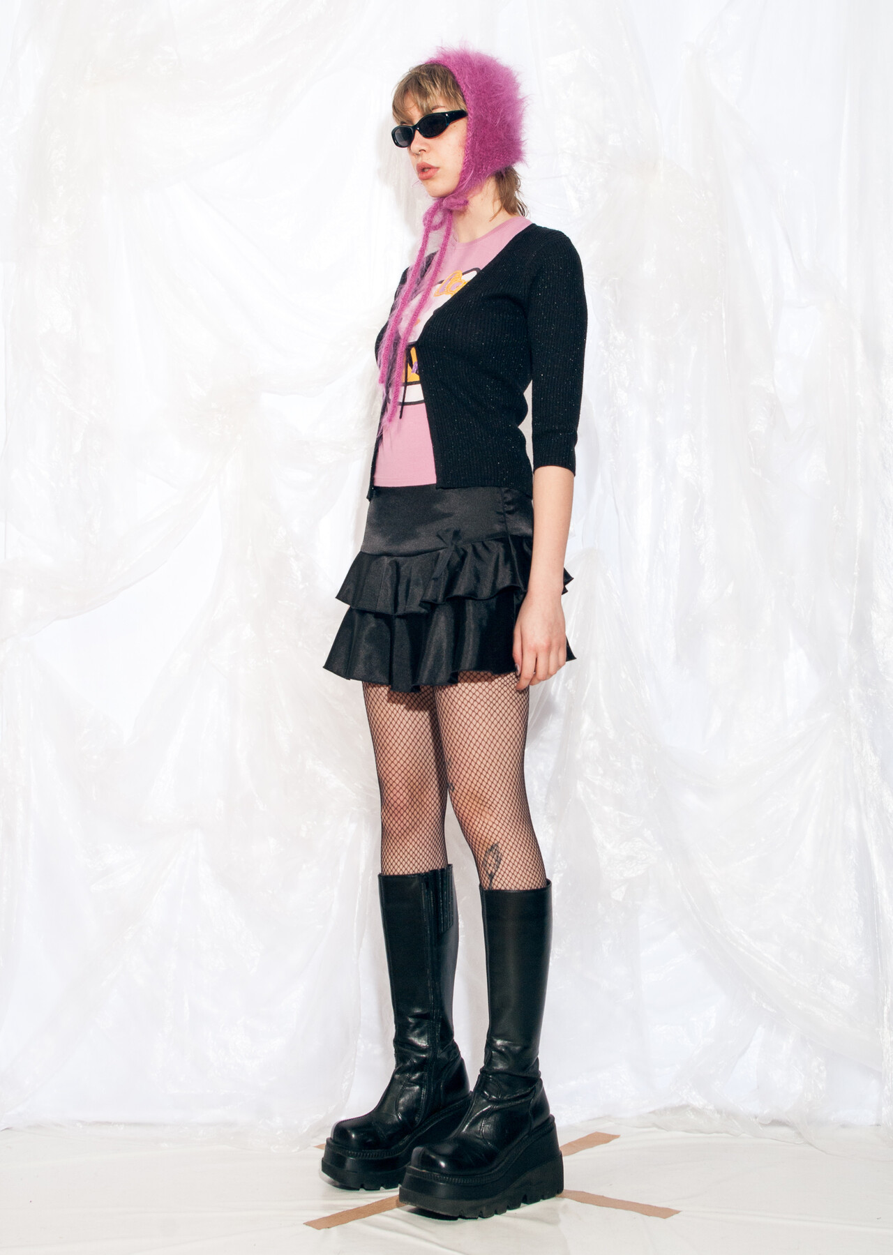 Meet this long-sleeved, sparkling black Y2K vintage knit cardigan – the rebellious embrace of early 2000s fashion in the oh-so-delightful form of ribbed knitwear.