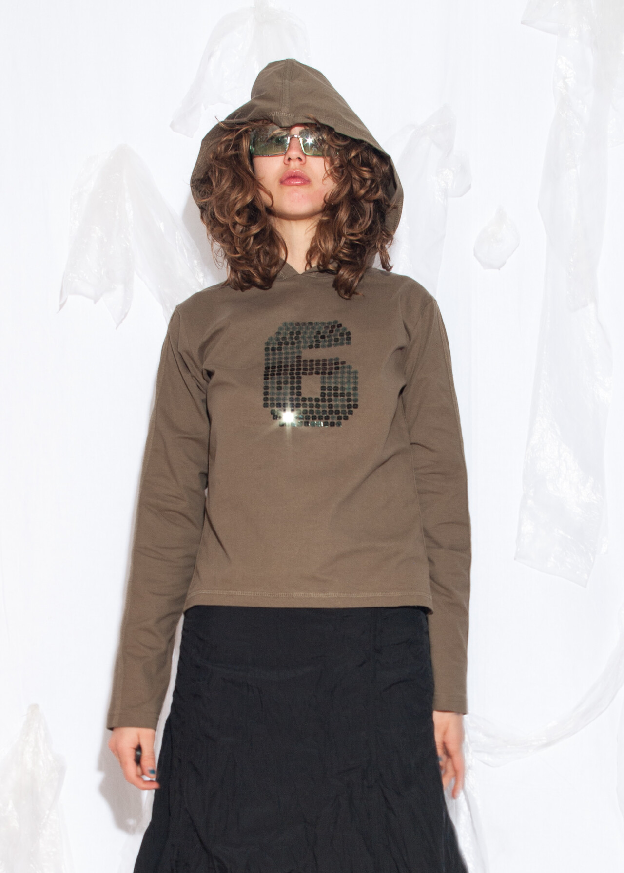 Tags: 2000s vintage style, cyber grunge, hooded top, sequin pattern