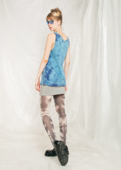 Vintage Silk Top 90s Reworked Tie Dye Blouse in Blue