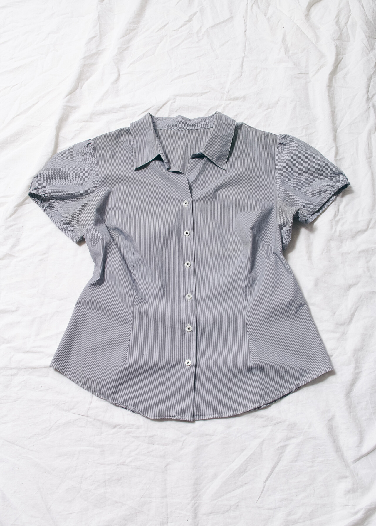 Tags: 2000s style clothing, fitted striped shirt, office siren, slim fit blouse, y2k vintage fashion