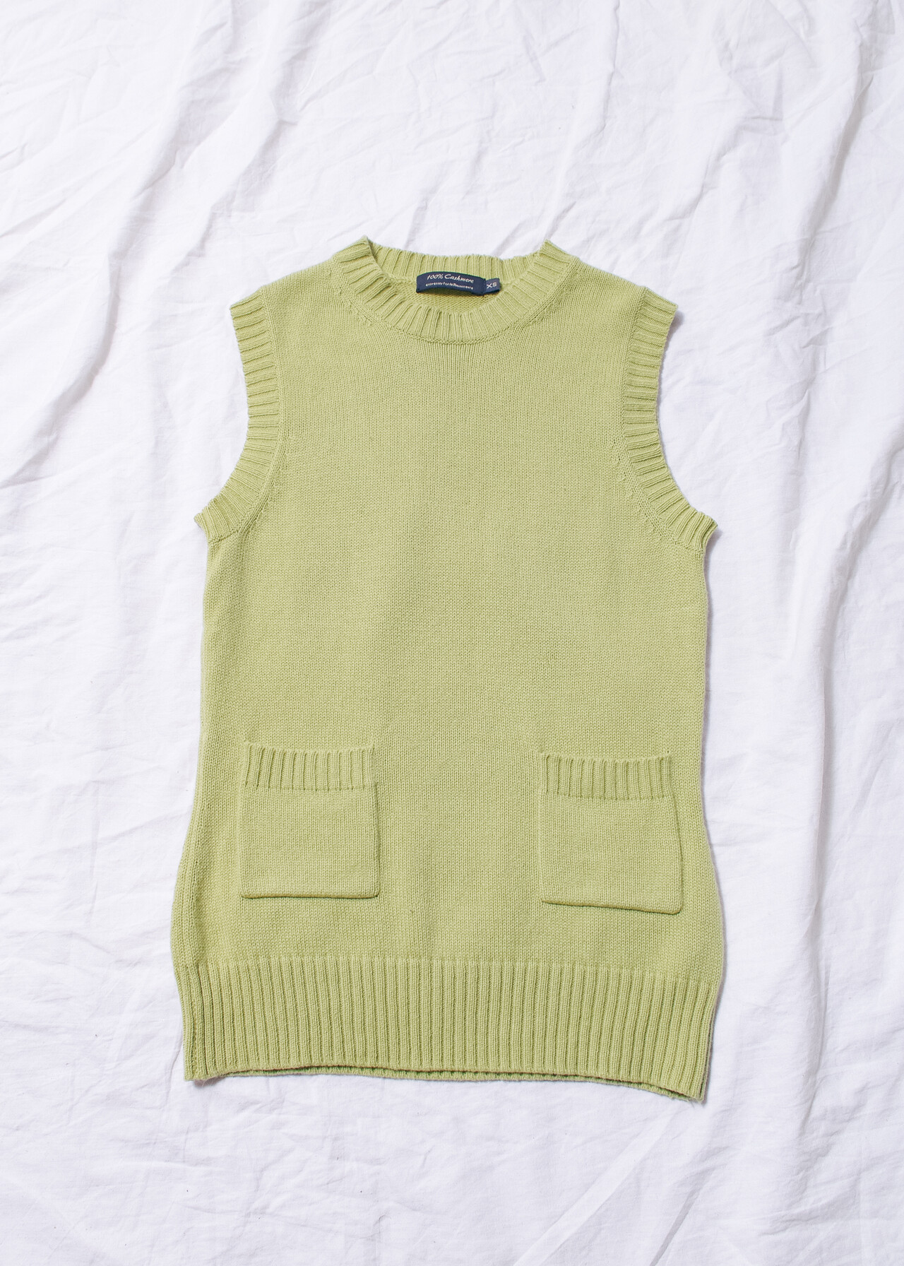 Tags: 2000s style clothing, cashmere top, green knit top, knitted vest, minimalist outfit, office siren, slim fit waistcoat, y2k vintage fashion