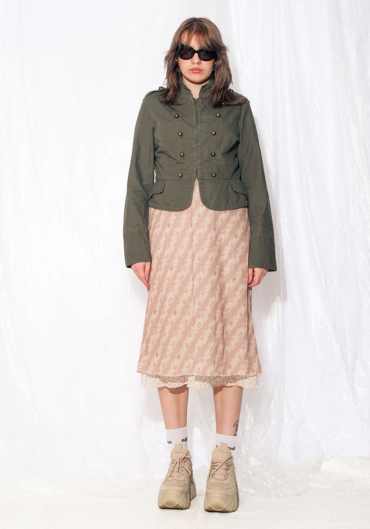 Vintage Y2K Slim Fit Military Jacket in Khaki