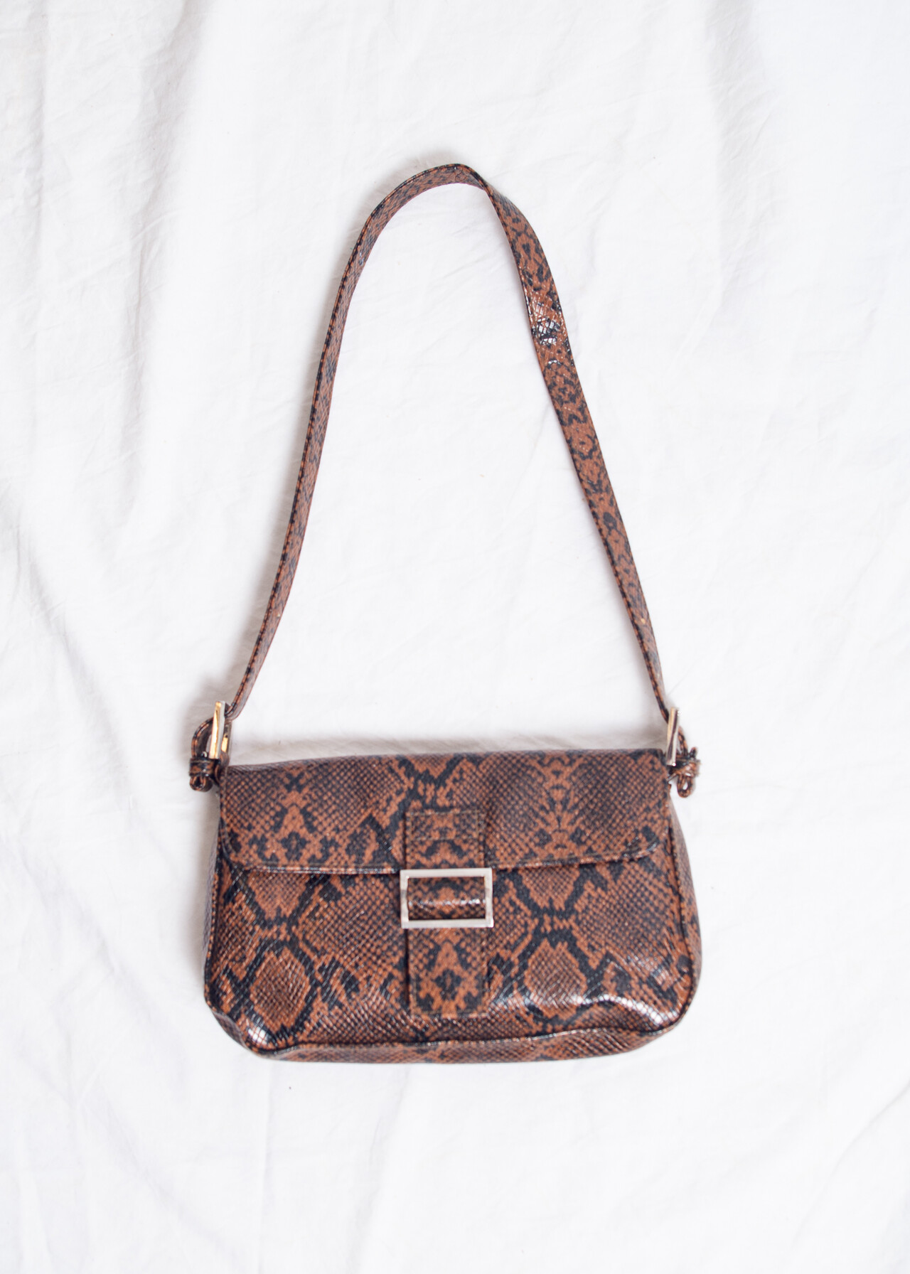 Vintage Y2K Snake Print Shoulder Bag in Brown
