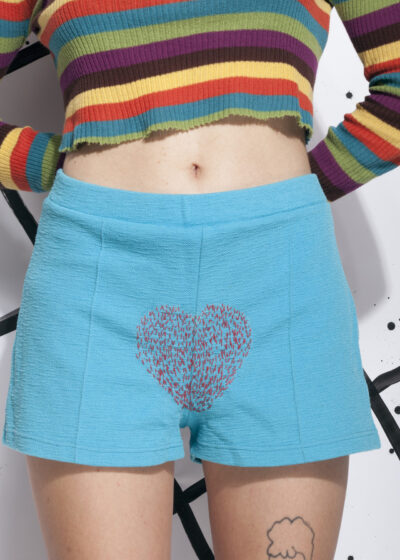 Vintage high-waisted shorts 70s reworked feminist embroidery