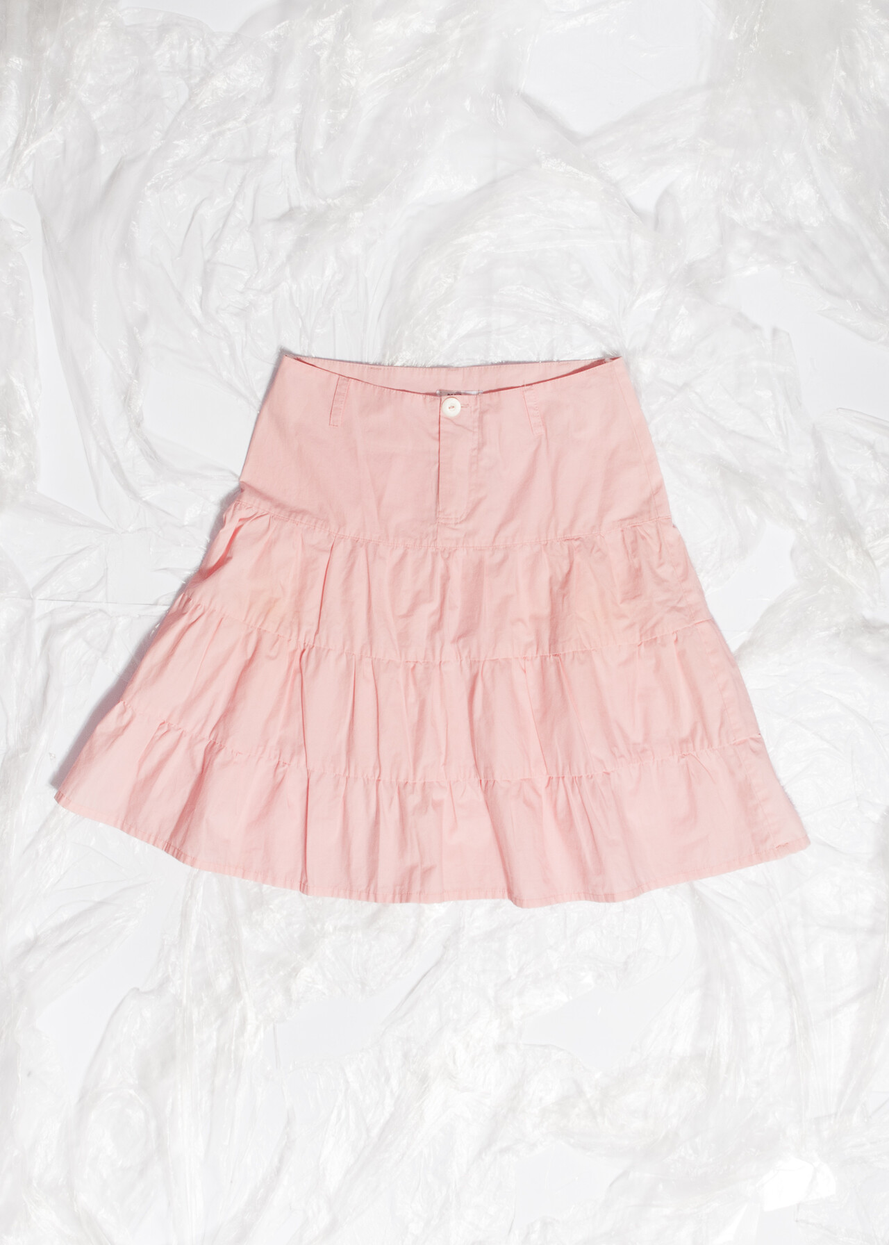 This Y2K vintage tiered skirt in pink is like twirling through a bubblegum-scented dream.