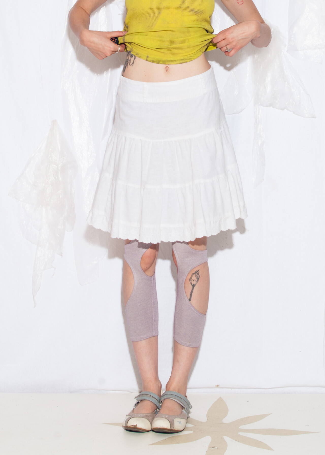Tags: 2000s style clothing, fairycore grunge, frilly midi skirt, low rise waist, tiered skirt, white cotton skirt, y2k vintage fashion