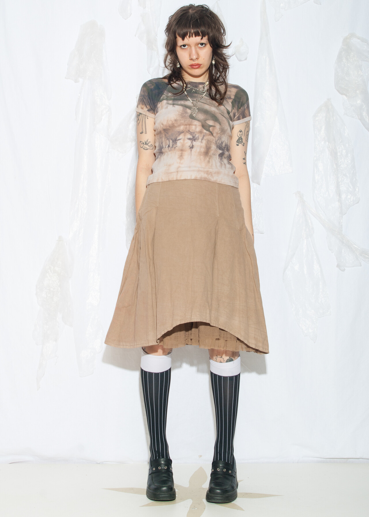 Vintage Y2K Tutu Layered Midi Skirt in Beige
